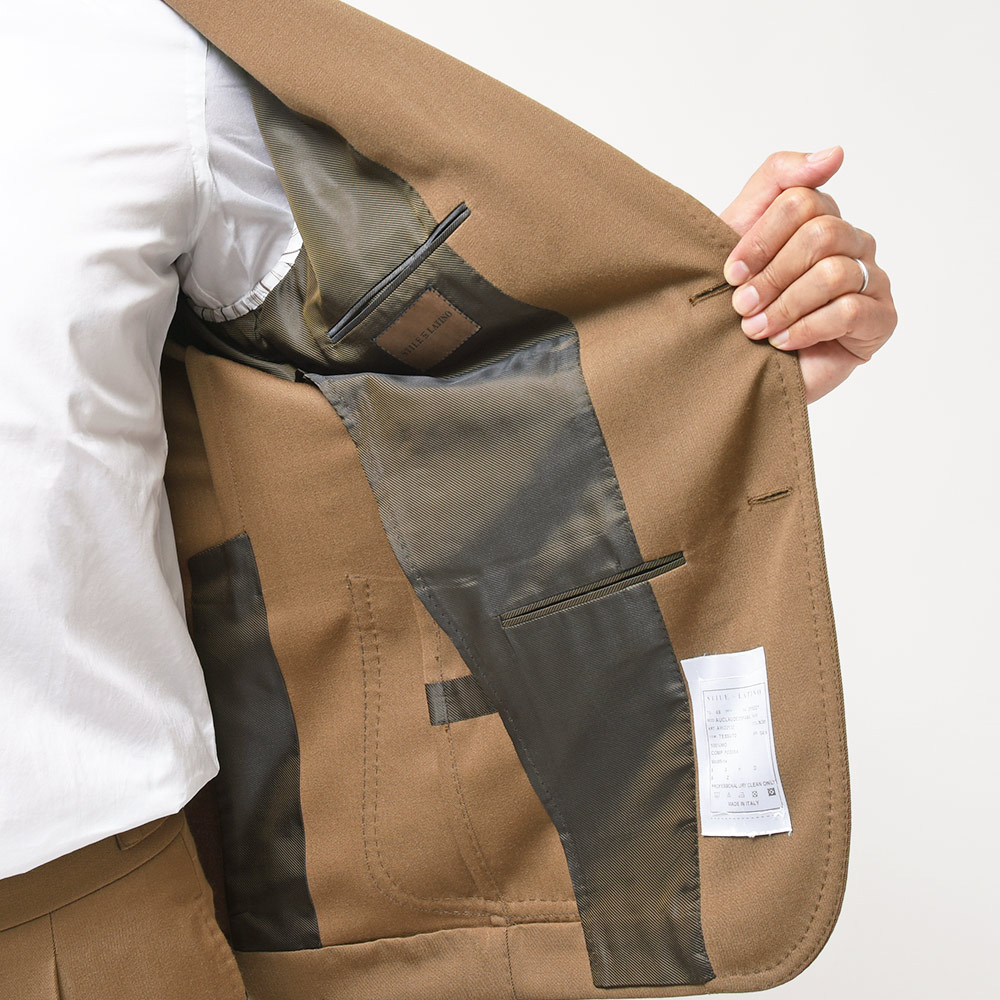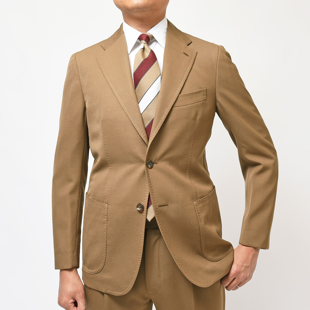 モデル“CLAUDE”はシングルの2つボタン仕様がモダンな印象を作り上げます。また、腰ポケットはパッチポケットとなっているため、ジャケットとパンツをセパレートでも使いやすく、今の時代の流れを汲んだニューモデルです。