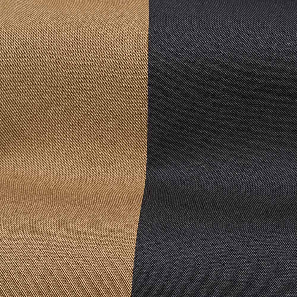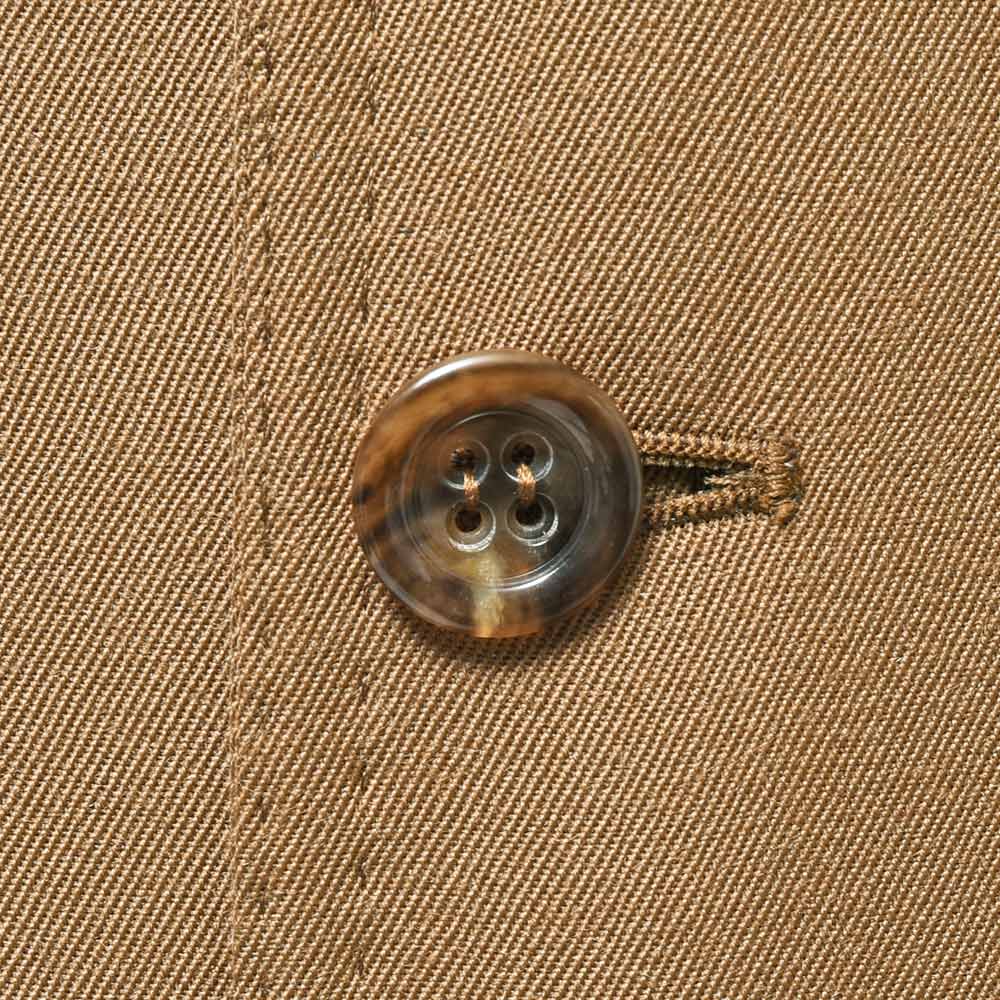 目付400gのウール素材は、起毛感を抑えた程良いコシとハリのあるギャバジン。シワになりにくいハリ感がありますが、上質なウール素材を使用する事で柔らかく、美しい光沢感も持ち合わせています。起毛感の少ないギャバジンですので、3シーズン着用できる息の長い一着です。
