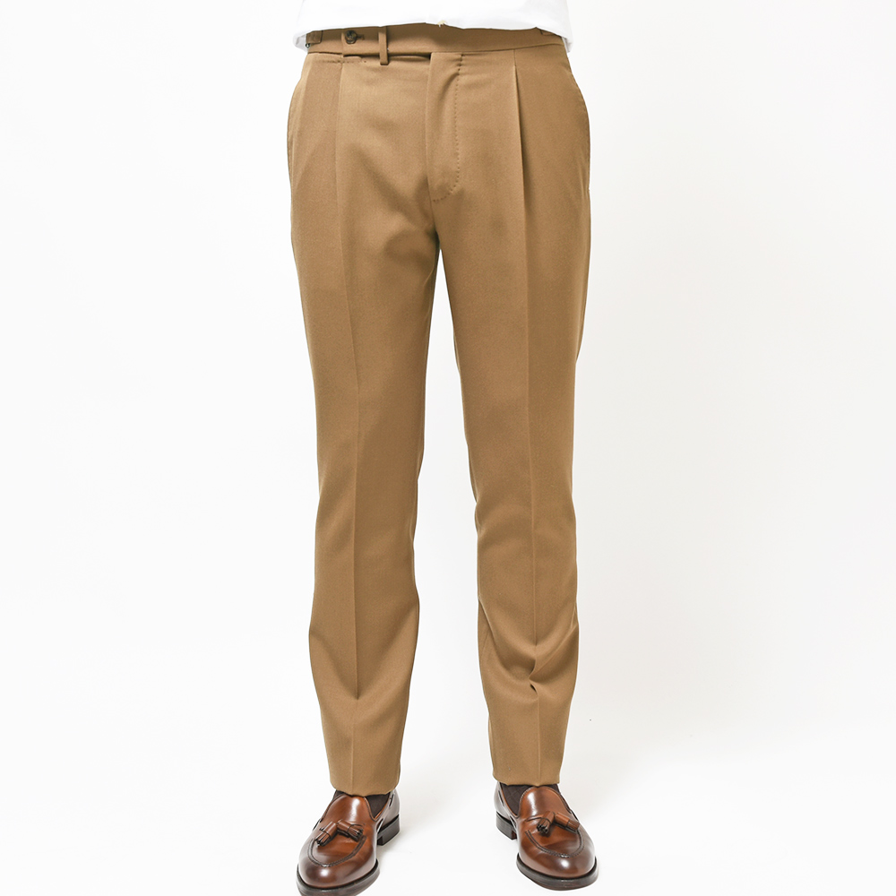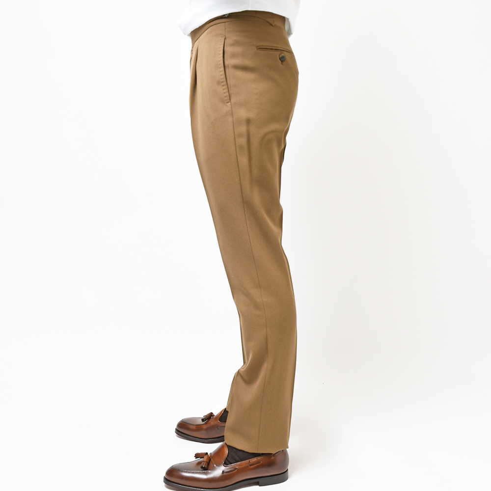 当ブランドらしいダブルステッチに組下はベルトレスの1Pと、ドレスクロージング好きにはたまらない本格仕様。