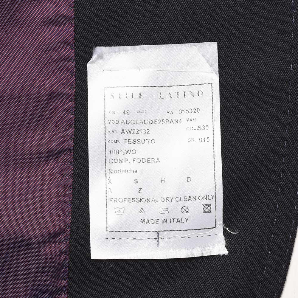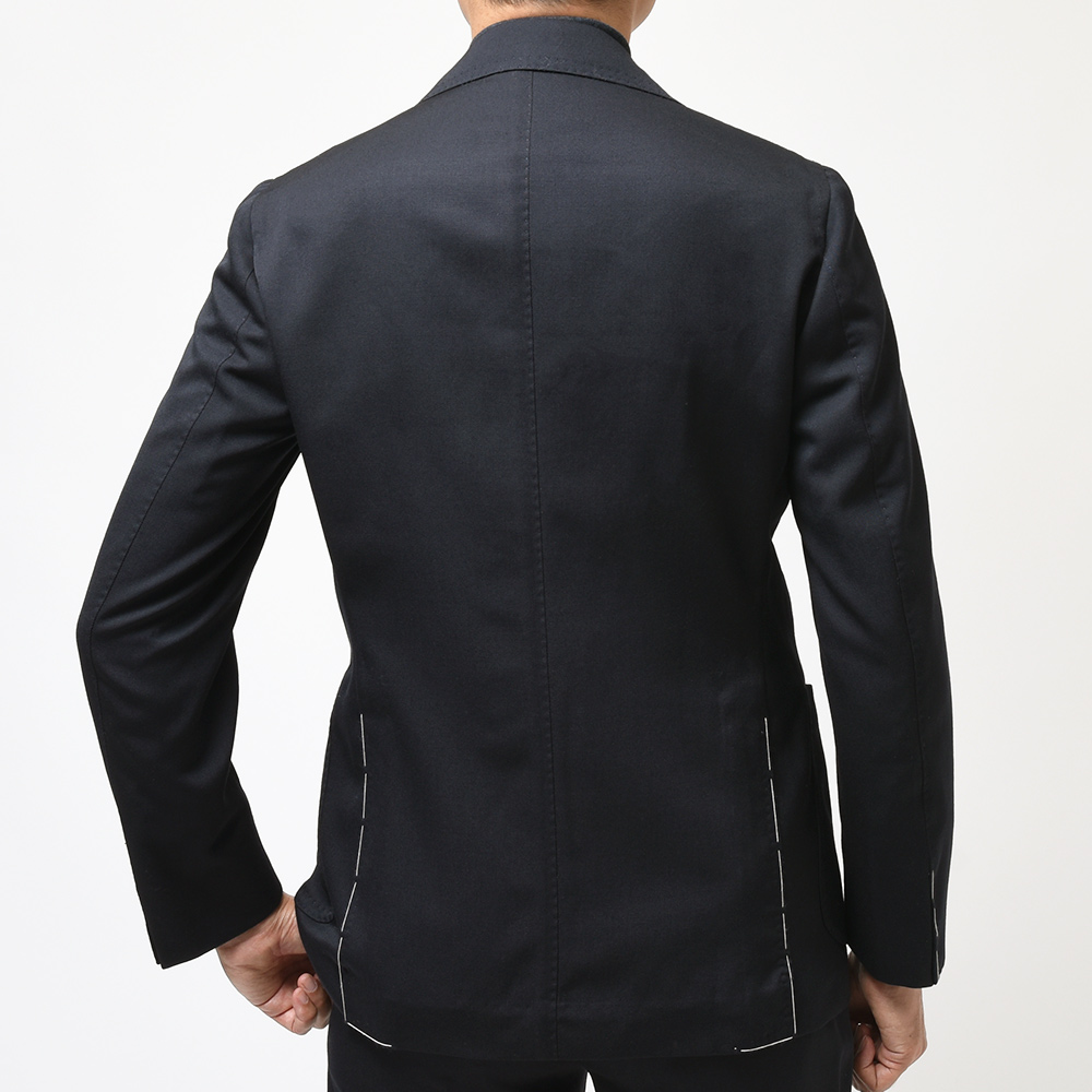 2パッチポケット、サイドベンツ、ラペル幅9cm、袖アンフィニッシュド(本切羽・開き見せなどの釦付け修理が必要)です。
