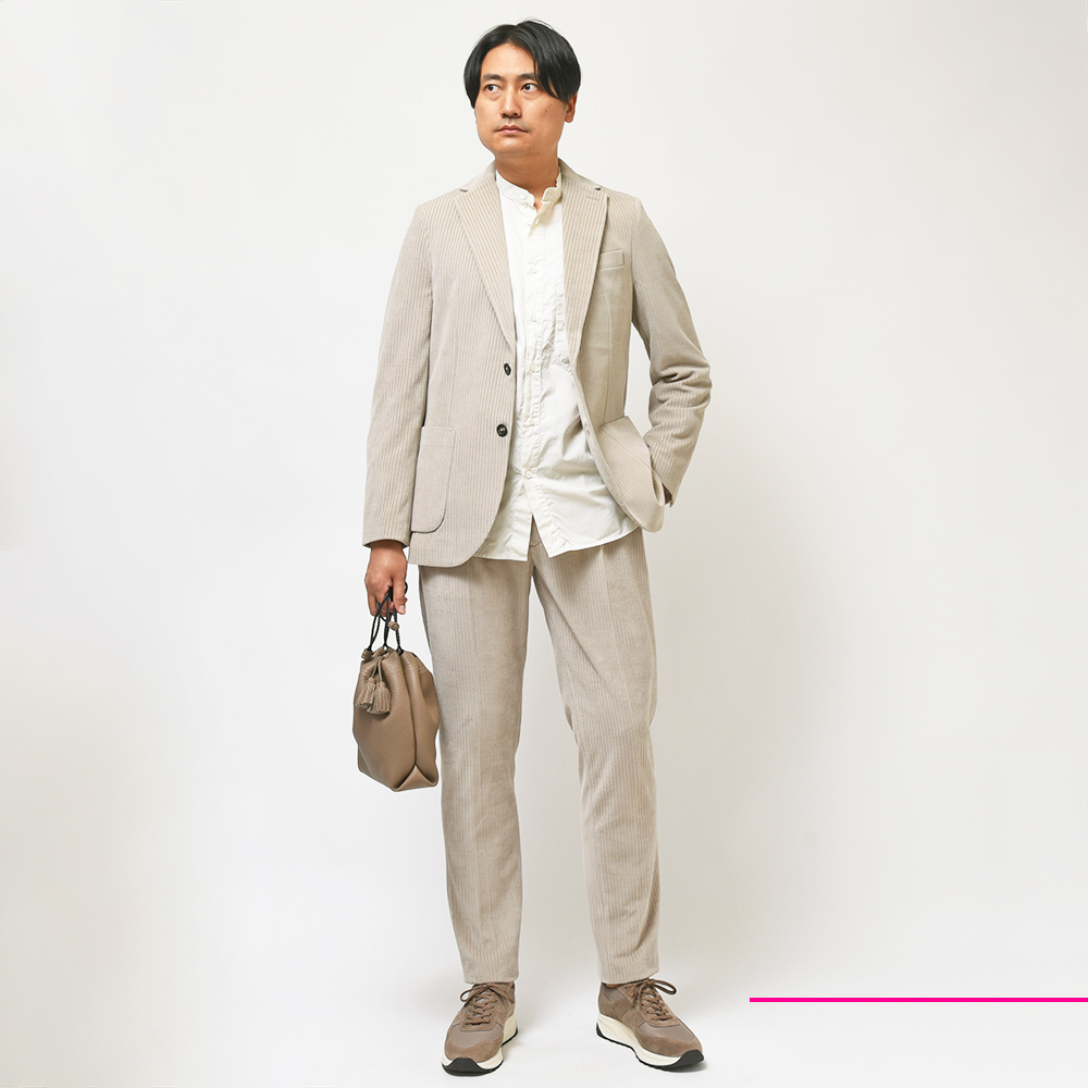 コーデュロイ等のシーズナルな素材を取り入れることで、季節感のある高い完成度のスタイリングが出来上がります。