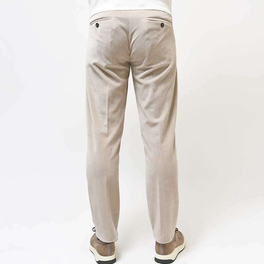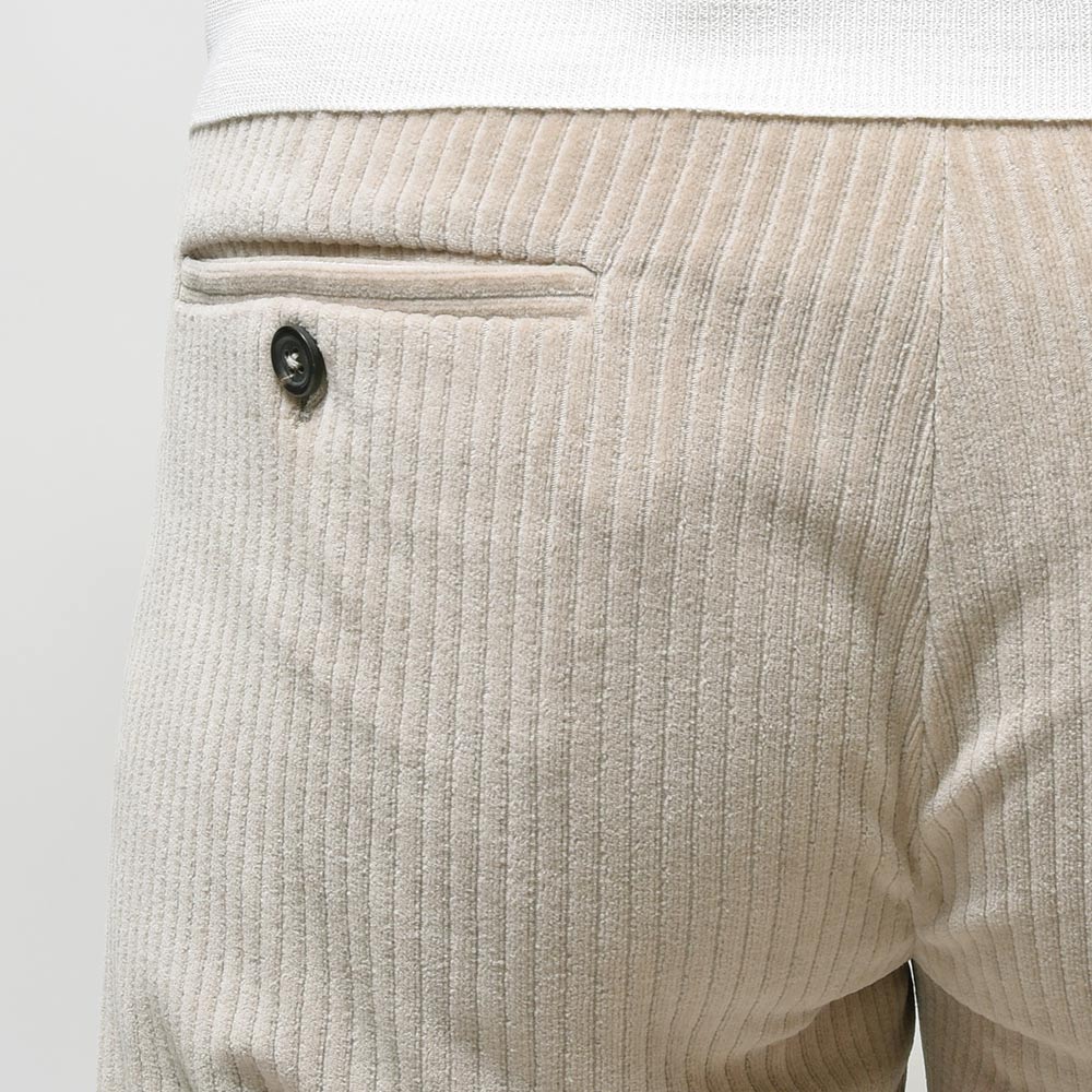 都会的な雰囲気のソフトコーデュロイは、季節感を持たせつつも着回しやすさが魅力です。柔らかくソフトな風合いのコーデュロイですので、土着感は皆無。トレンド感を漂わせつつもモダンな表情を覗かせてくれます。また、ココンチらしいジャージー素材になりますので、伸縮性を伴った穿き心地は言わずもがな。ベルトループ付きのドローコードパンツですので、カジュアルからドレスライクな着こなしまで幅広く対応してくれます。