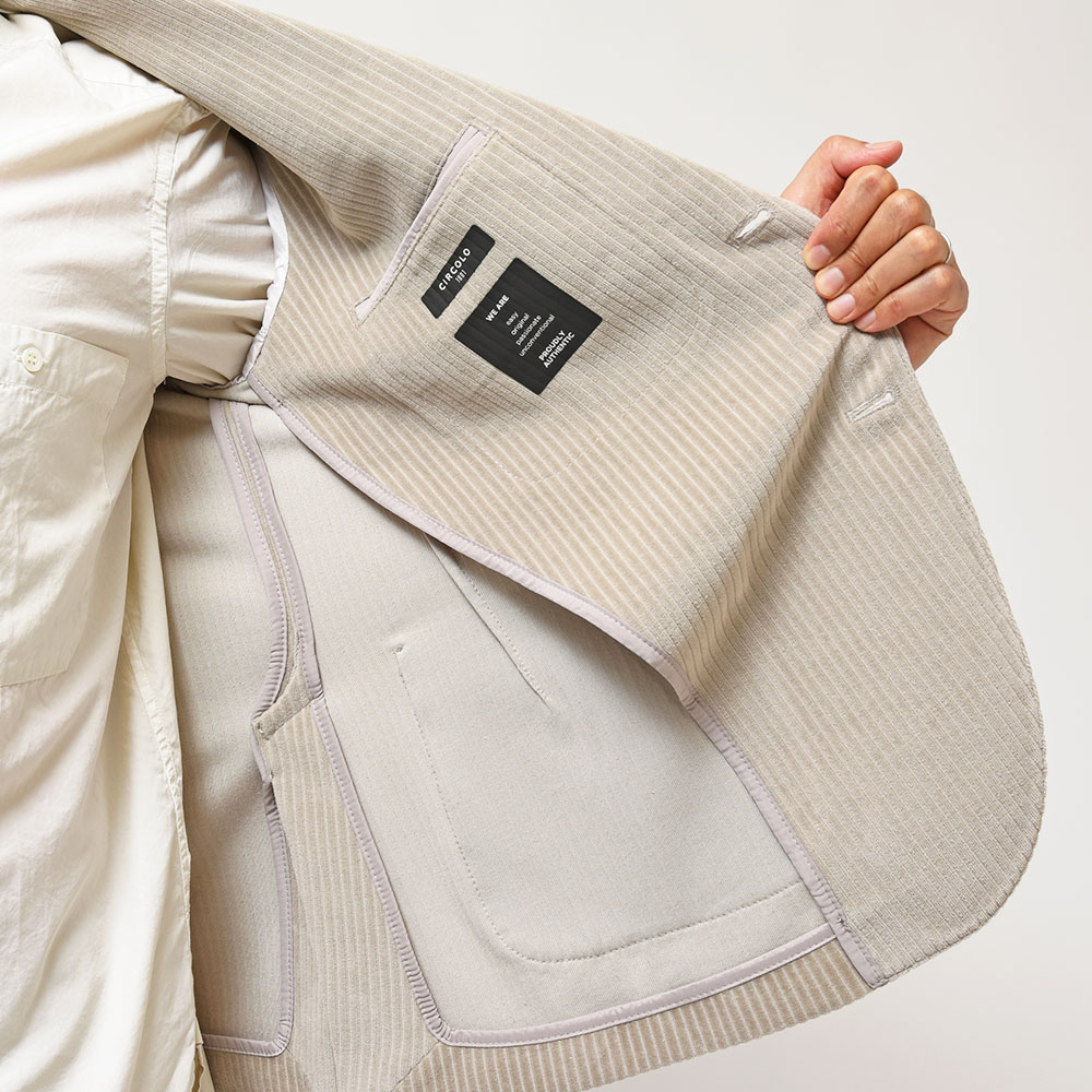こちらのジャケットはセットアップになるパンツ(別売)をご用意しております。