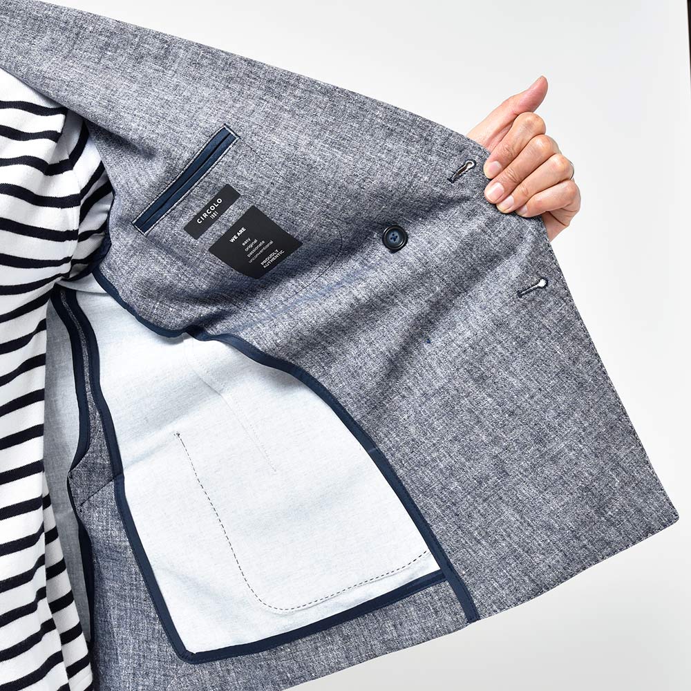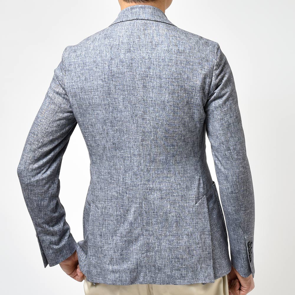 コンフォート素材を使用したセットアップの先駆者である、CIRCOLO 1901。コチラは、やや薄手のジャージー素材にシャンブレー風のプリントを施したココンチらしいテクニカルな一着。一見するとプリントとは気づかない高い技術力による仕上がりは流石の一言。また、程よくタイトなシルエットに、2つボタン仕様がジュアルなジャケットとして非常に有能な働きをしてくれます。