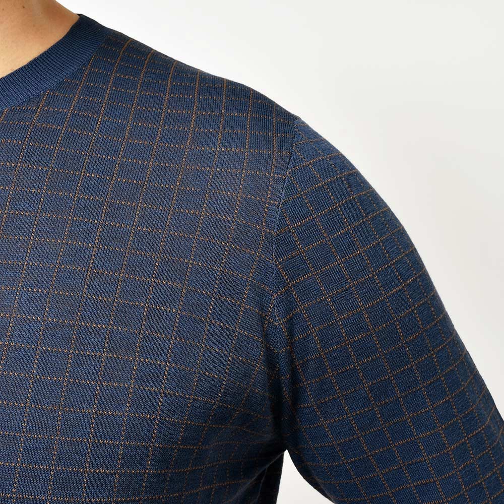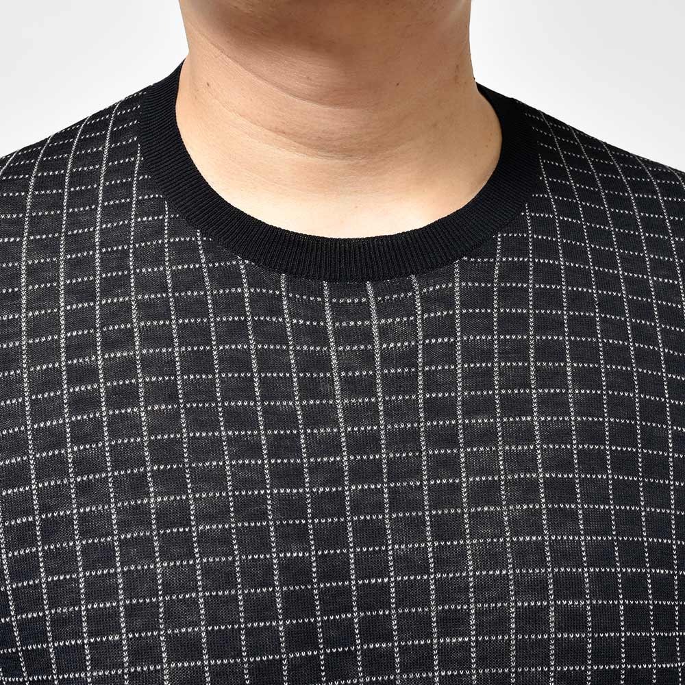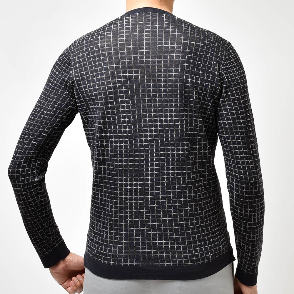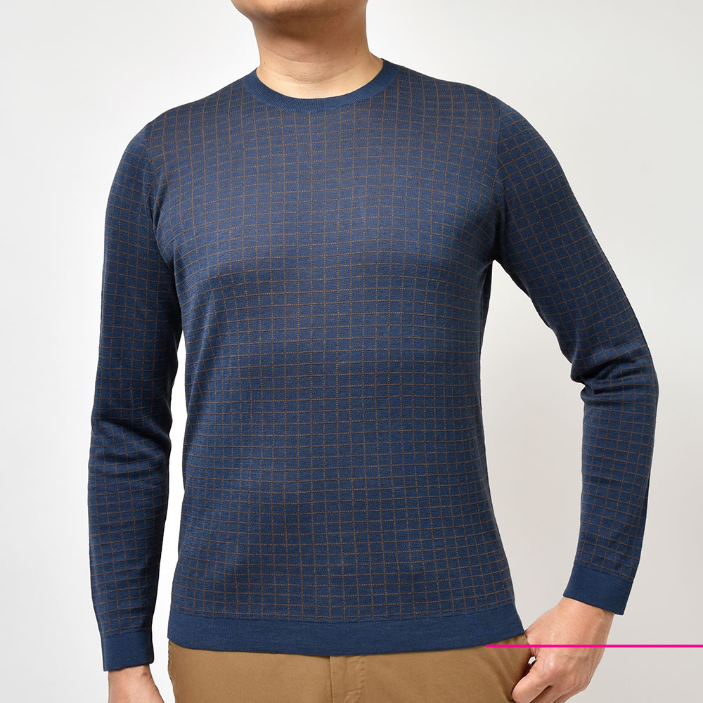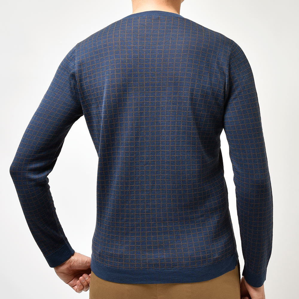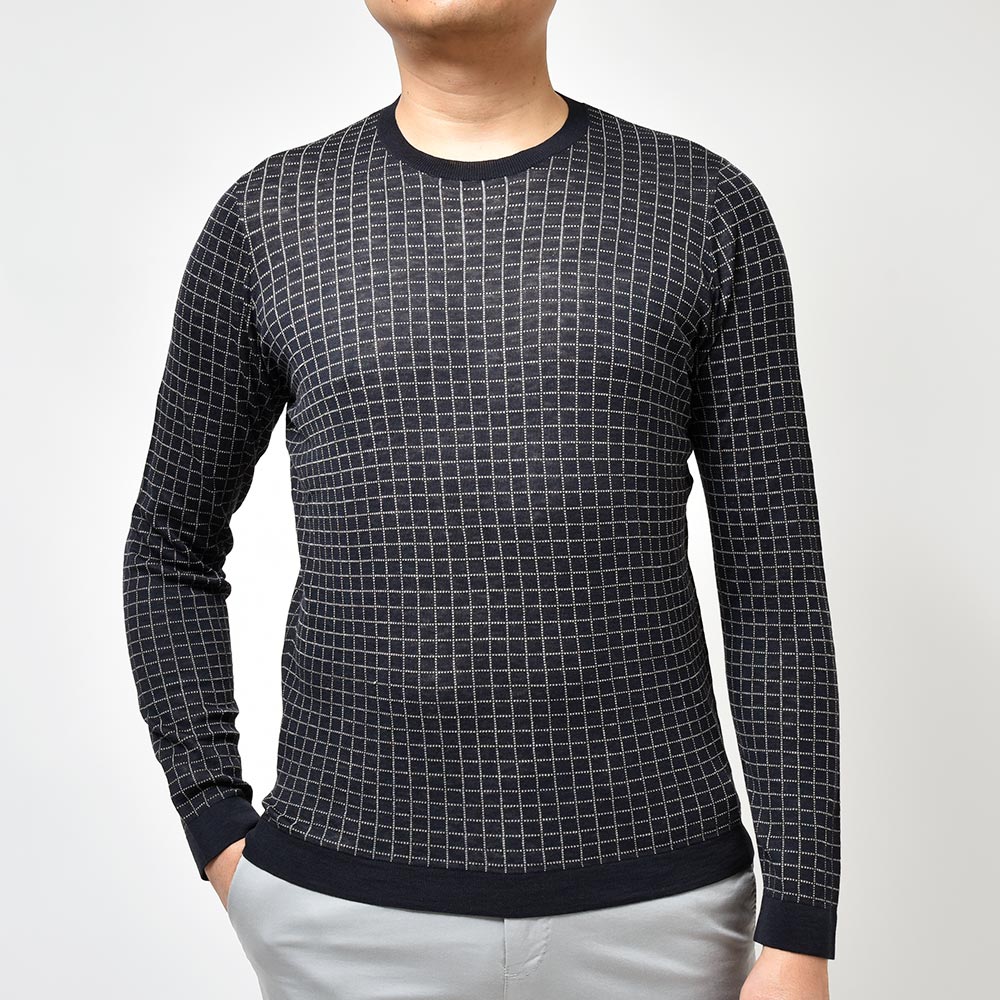 ジャケットやスーツだけには留まらないSTILE LATINOのコレクション。ヴィンチェンツォ氏自らセレクトしたこちらは、コットンにシルクをブレンドした、柔らかさと滑らかさを合わせ持った質感。また、グラフチェックがモダンな印象を生んでおりシャープさを持たせつつも、袖口と裾のリブ幅を少し広めに取ったスポーティーなディティールになります。