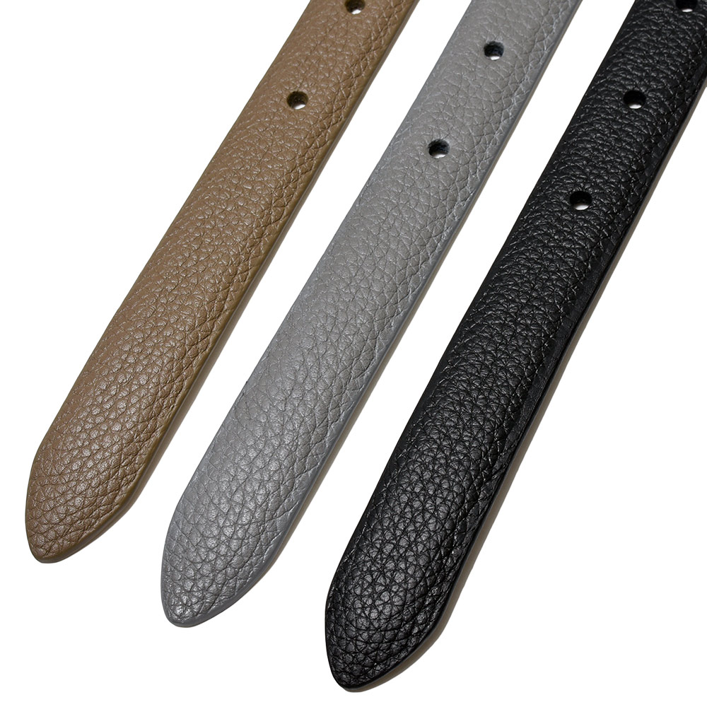 ゴールドの華奢なバックルのモダンな佇まいが、ナロー幅のベルトと非常に好相性です。