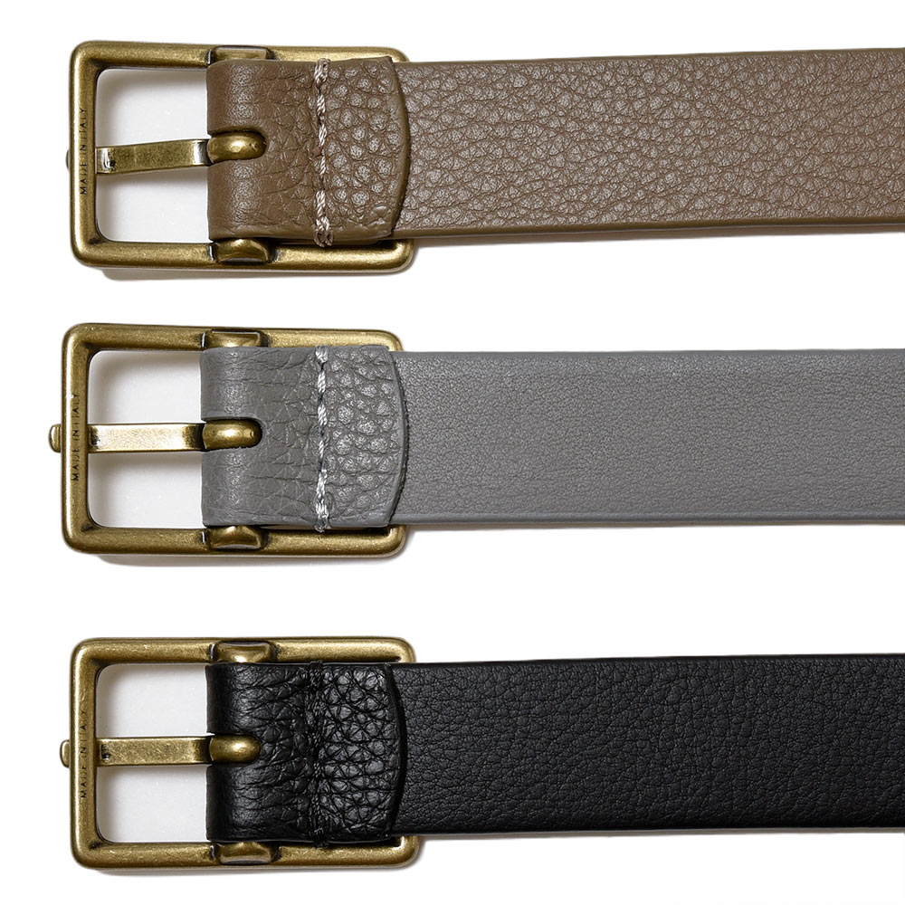 非常に柔らかでしなやかな型押しのカーフレザーを使用した2.0cm幅のナローベルトは、昨今のナチュラル~ワイドなシルエットのパンツをモダンに見せてくれる、今のスタイリングにはなくてはならないアイテム。ringでは、BERNARD ZINS・Scye・BARENA・Tangentなどのパンツと合わせて頂くのがオススメです。