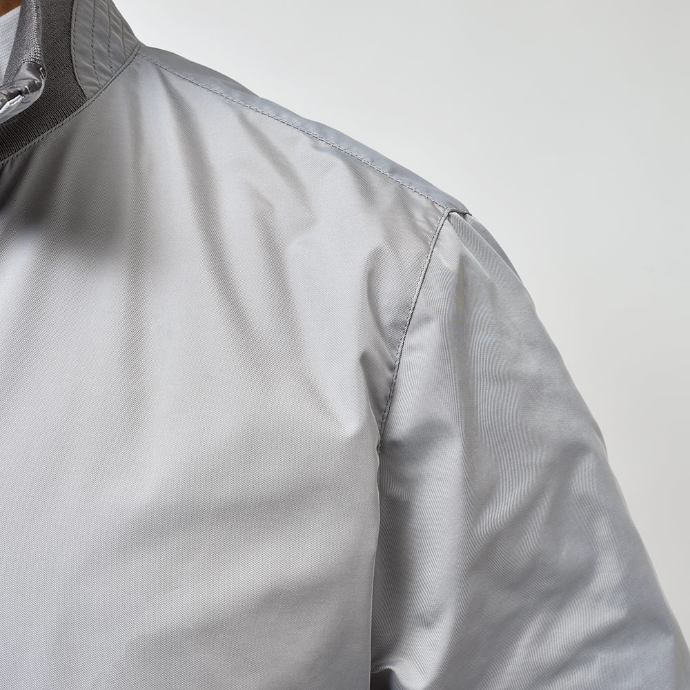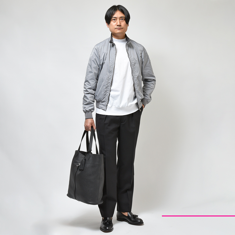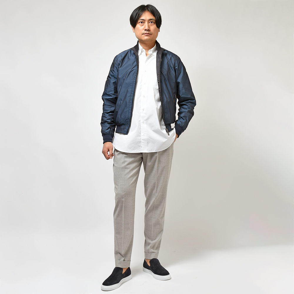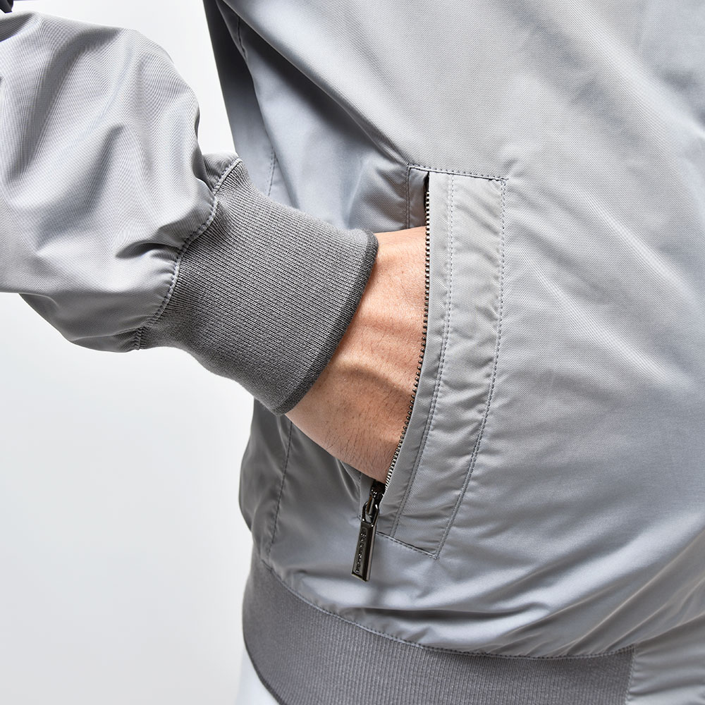 リバーシブル仕様のボンバージャケットモデル“AXTEN(アクステン)”。スタンドカラーのシンプルなデザインは、普遍的な魅力を持ち合わせます。さらに、リバーシブル使用となることで、色味のトーンを変化させることで、春にも秋にも着用しやすい一品となっています。また、“SHAPE MEMORY”を採用したKMは、形状安定ポリエステル生地に撥水加工を施し、シワや汚れの付着を防ぎます。