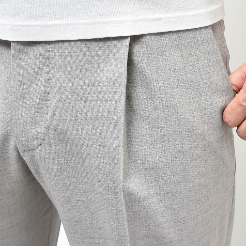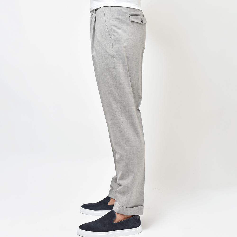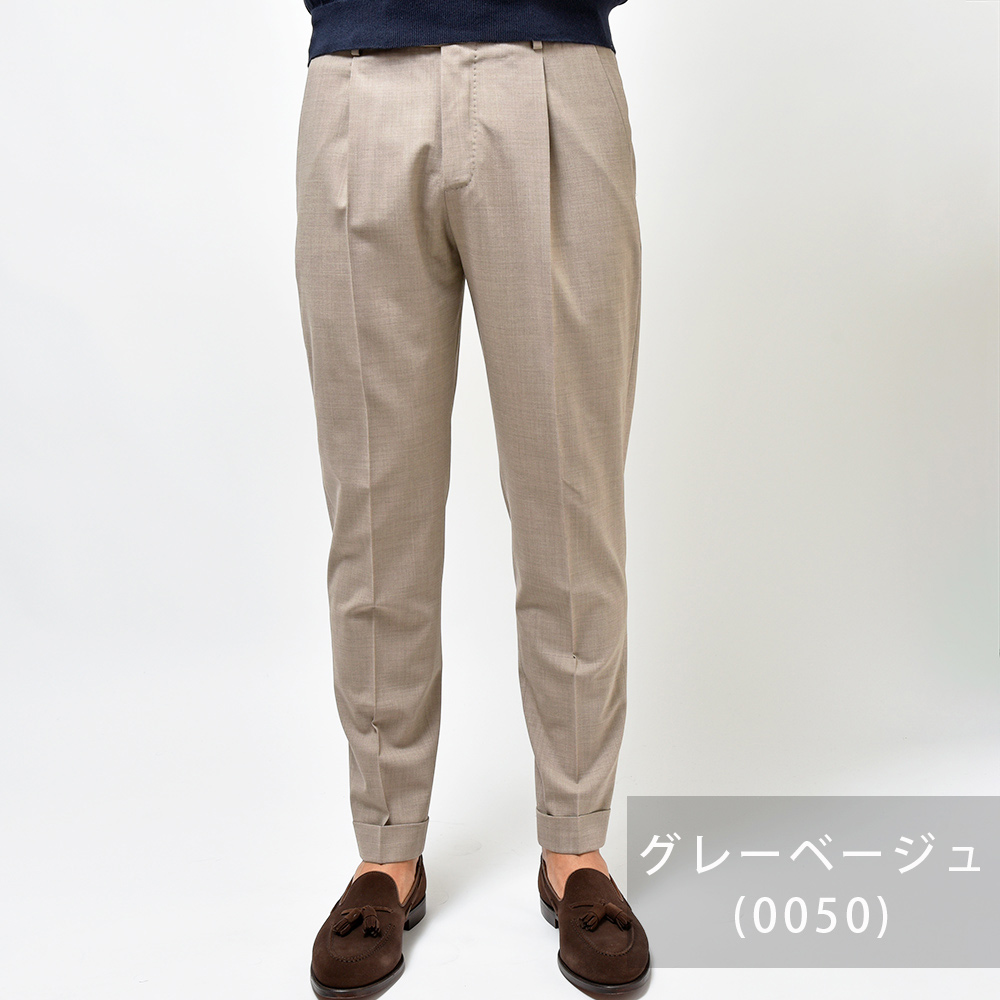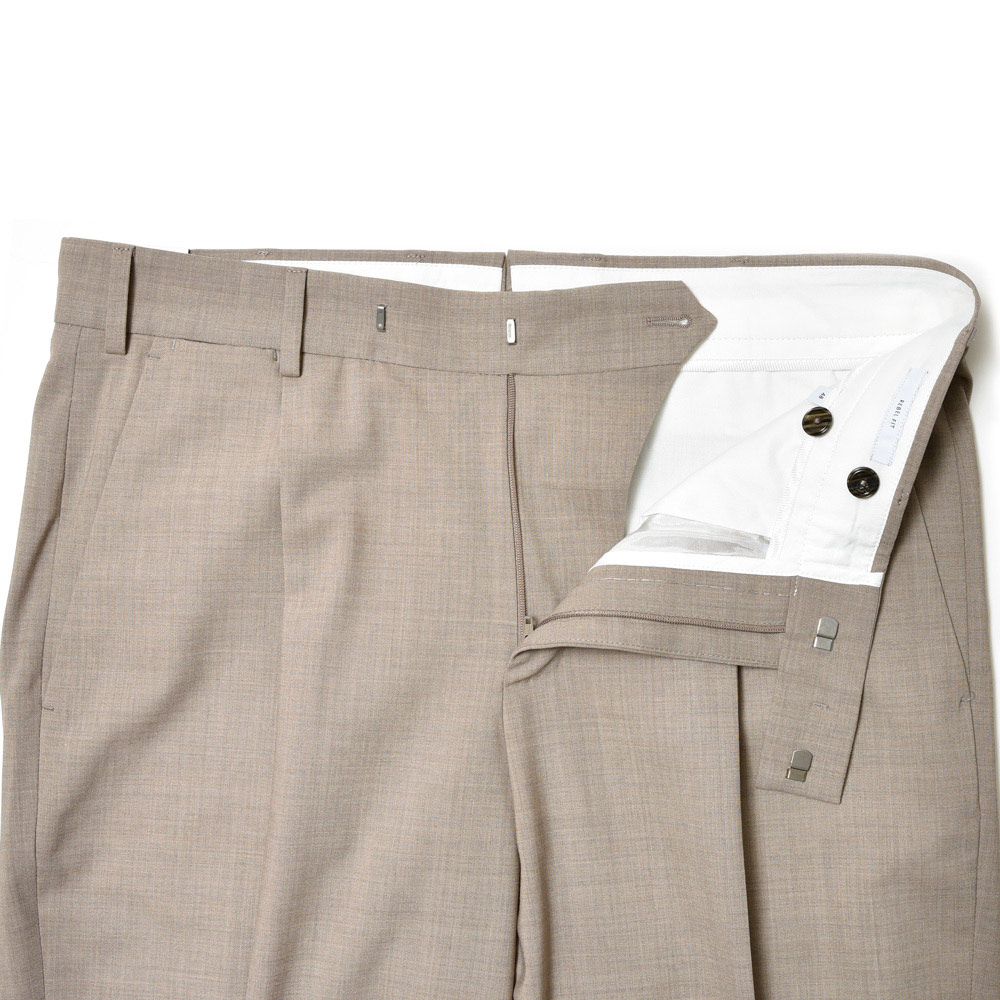 ディレクターのドメニコ氏も愛用する、ほんのりとモダンな色気を纏った“EDGE”シリーズ。こちらは目付けの290gのヴァージンウールを使用したウールトロピカルは、夏場でも快適な清涼感ある穿き心地に、ストレッチを効かせたストレスのない着用感。さらには、少しゆとりのあるリラックスしたシルエットでありながらも、ジャケットにも合せられる上品さを持ちます。