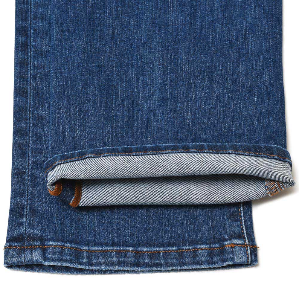 濃い目に色を残したウォッシュドデニムは、アタリ感を抑えたクリーンな見え方が上品なカジュアルスタイルを作り上げます。また、見た目とは裏腹な高いストレッチ性を持った、程よく柔らかな生地感はクセになる穿き心地。サスティナブルな紙素材の白いパッチに、飴色のステッチに飴色のボタン&リベットといったパーツ使い、細部まで拘り抜かれた妥協のない作りを感じることができます。