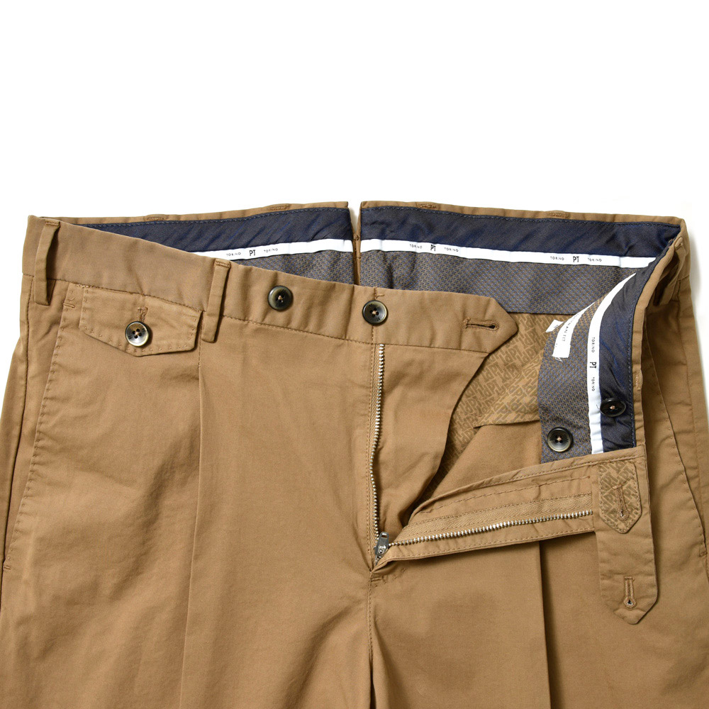PT TORINOには欠かせないFITとなった“GENTLEMAN FIT”は、プリーツが入り、少し股上が深く程よいゆとりの腰回り。