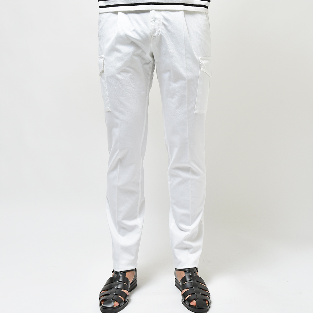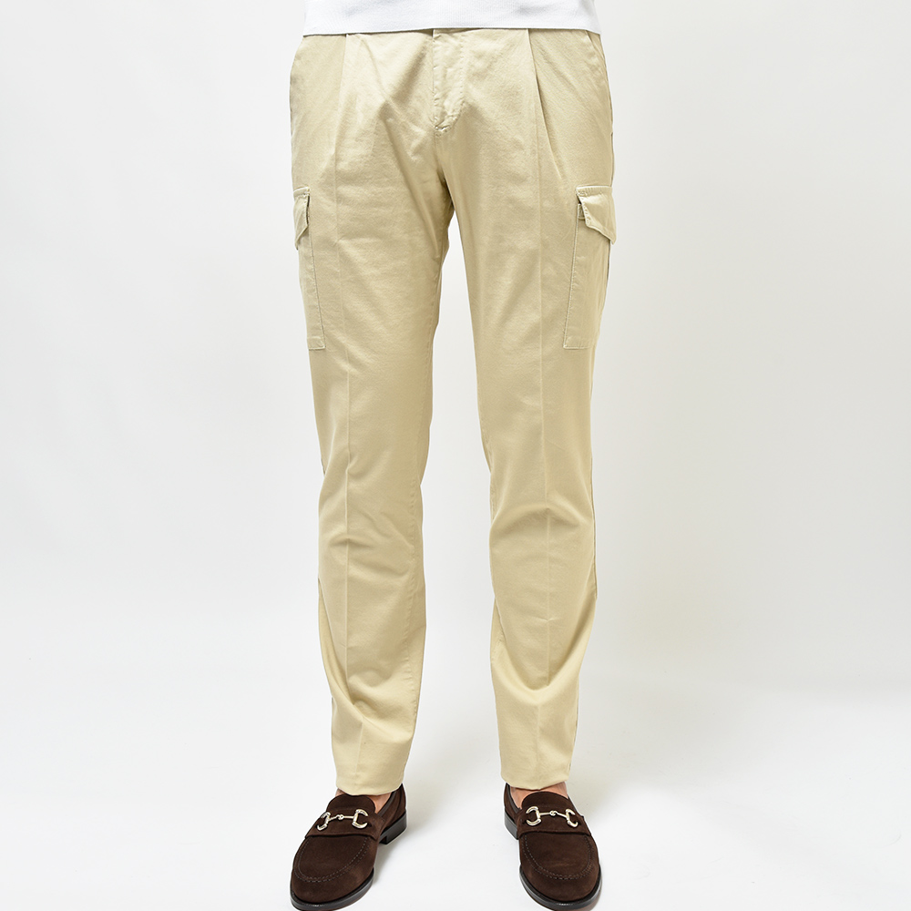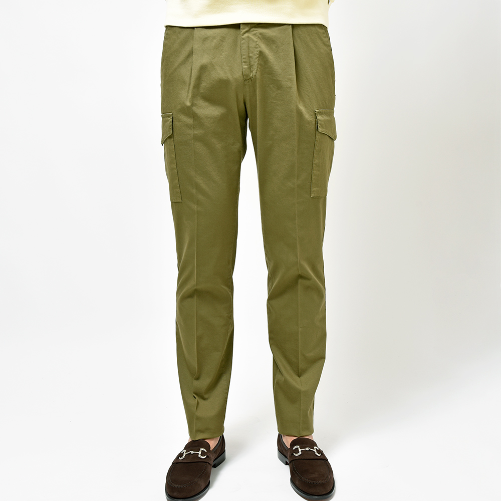 コットン リネン ストレッチ ツイル 1プリーツ カーゴパンツ MASTER FIT/PM09