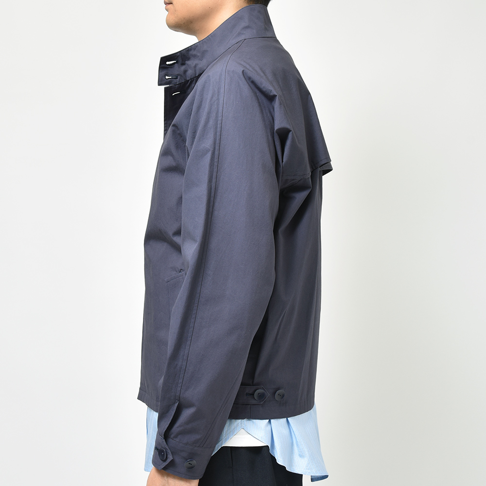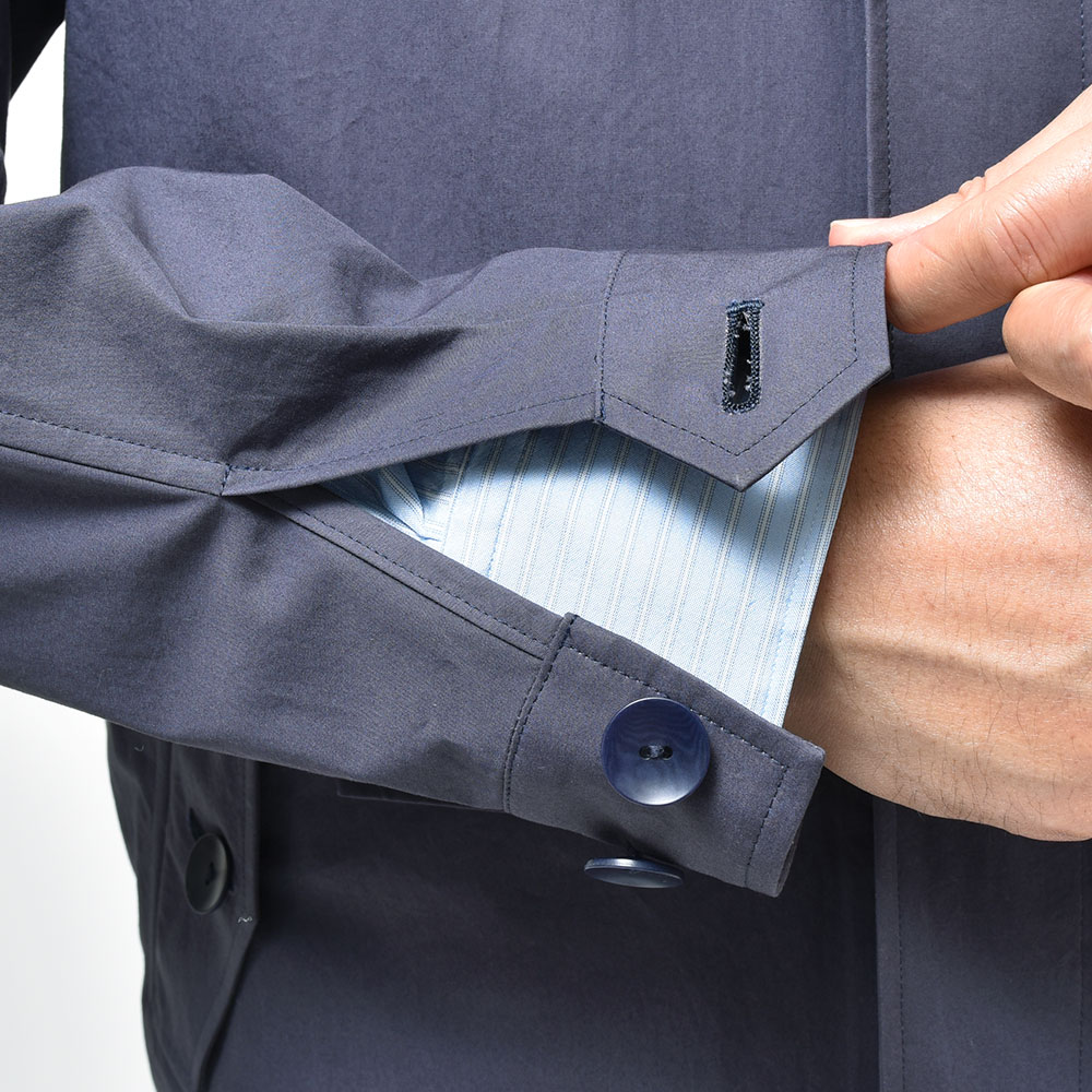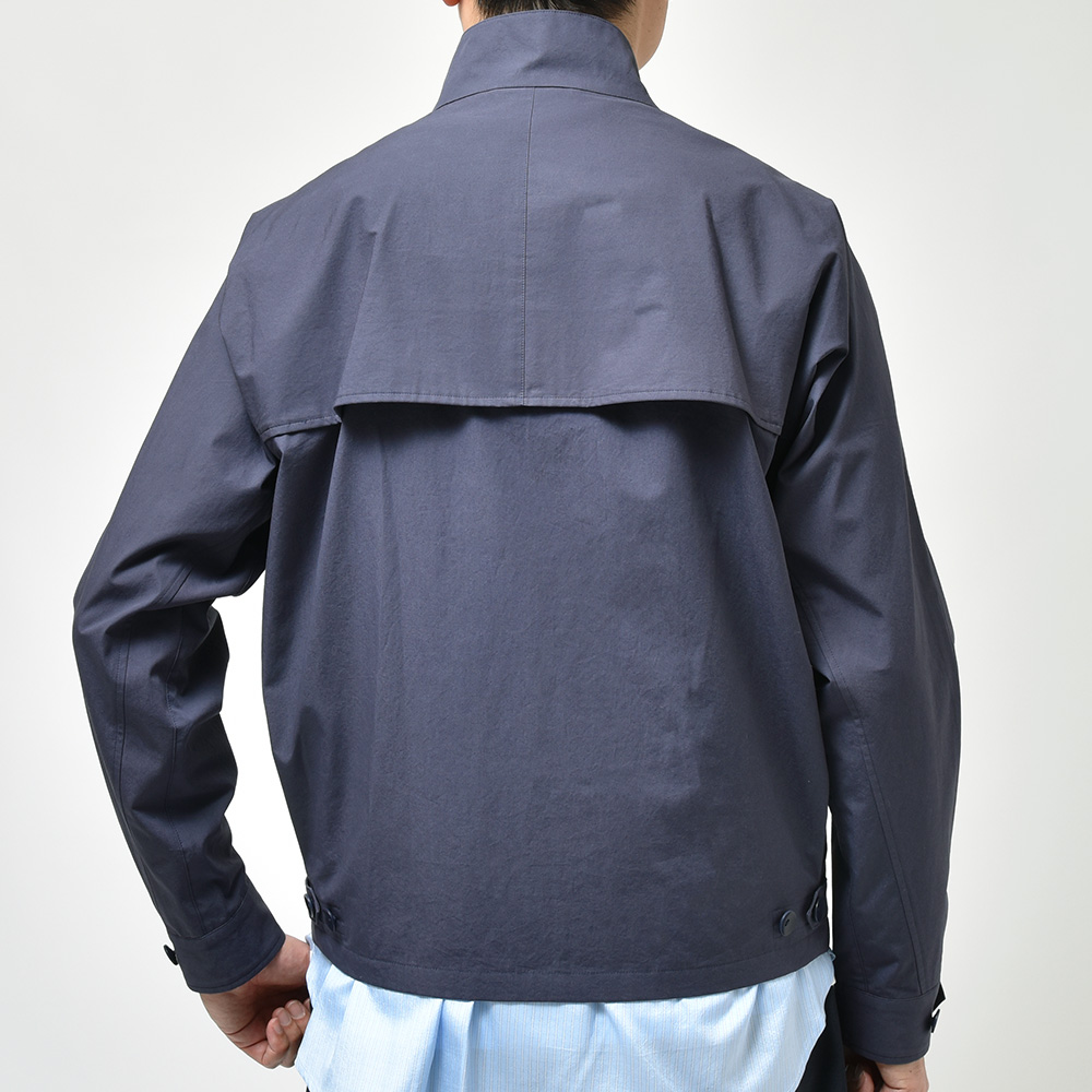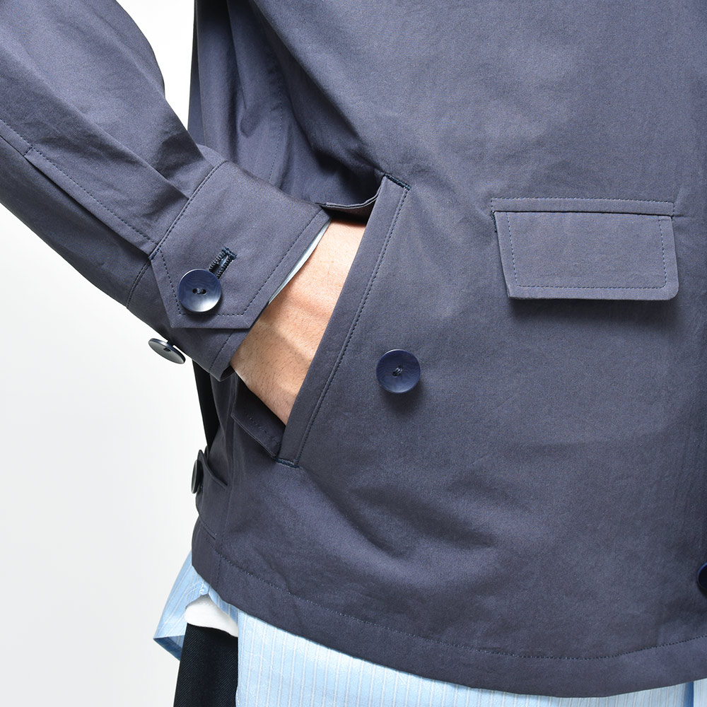 印象的なウォッチポケットや比翼前に加えて、ミリタリーコートに見られる、背のケープと袖が一体となった“ヨークスリーブ”を採用しています。モデルネーム”GIANNI”はそのスナップの際に撮影していた作品の主人公の役名から。