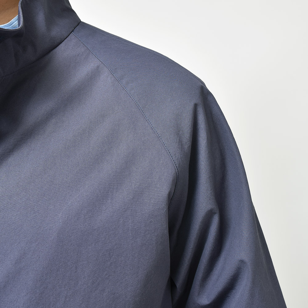 デザイナーである中込憲太郎氏自ら開発に携わる、オリジナルファブリックを使用するCOHERENCE。“COHERENCE Weather Resistant Cotton Light”と名付けられたこちらは、細番手の糸を使用し超高密度に織り上げることで、撥水性能を持つ軽量のコットン素材となっています。また、表面の凹凸感がドライな風合いをもたらしています。