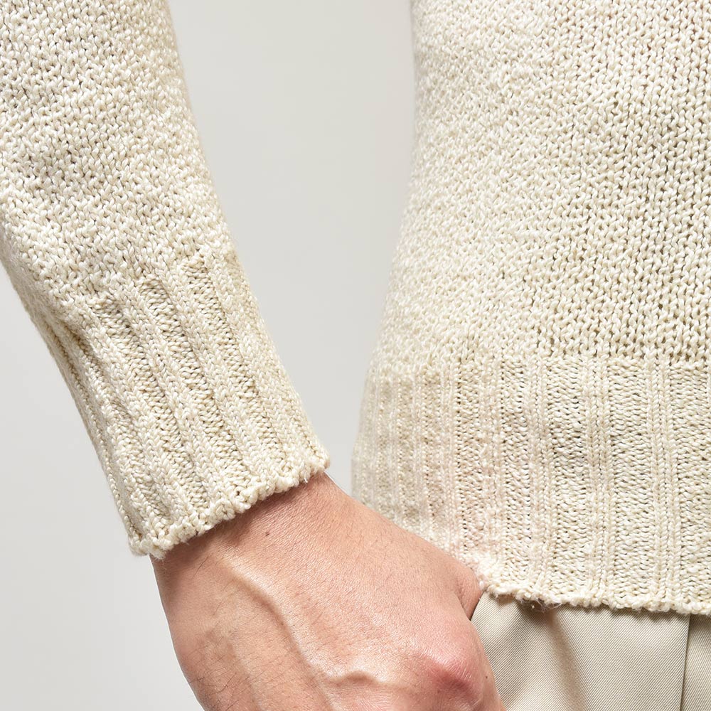 甘い編み地のローゲジニットは、しっとりとしたヌメりのあるタッチが高級感のある風合い。また、ロールネックになった首元はスタイリングにニュアンスを加えることができ、インナー使いは勿論、カットソーを下に着て一枚で着ても雰囲気のある仕上がりになります。