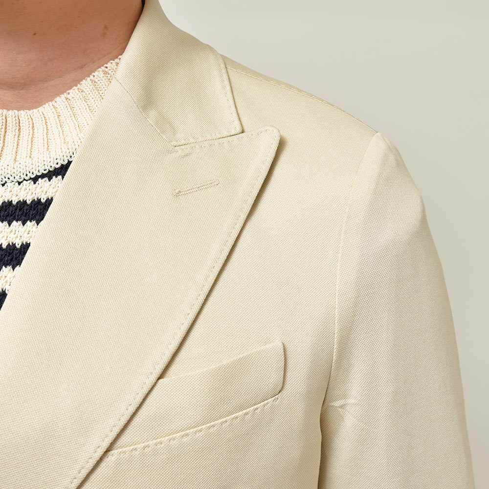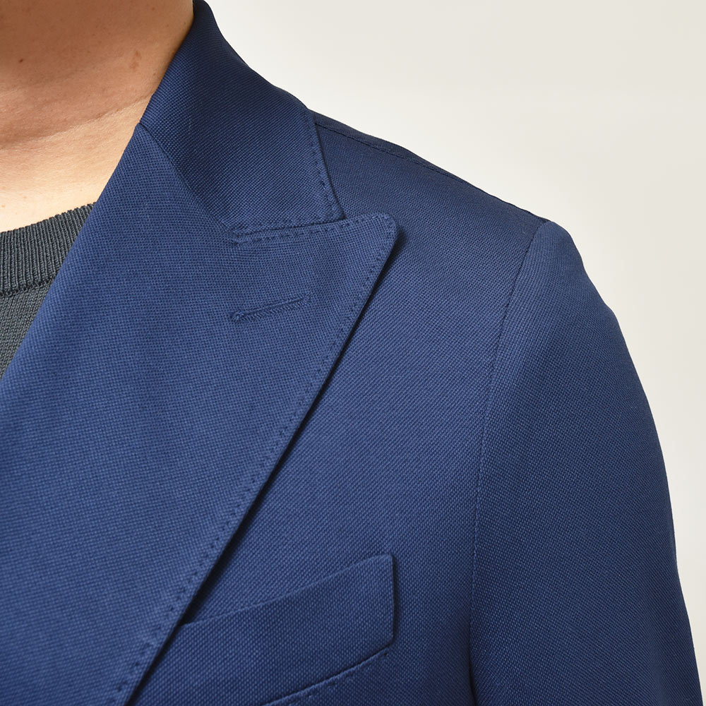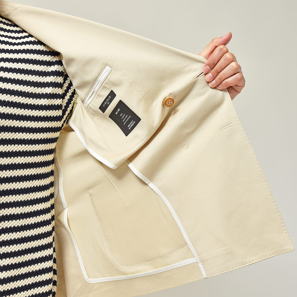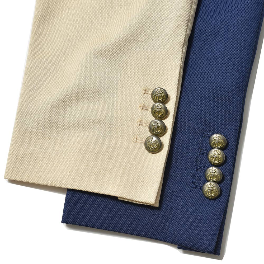 コンフォート素材を使用したセットアップの先駆者である、CIRCOLO 1901。コチラは、定番である“ピケ=鹿の子”よりもさらに目付を軽くし上品な風合いに仕上げた“プレミアムピケ”を使用。清涼感は勿論のこと、さらには伸縮性をも持ち合わせたジャージー素材というハイブリットな一着になります。程よくタイトなシルエットに、メタルボタンを使用したブレザーによって、スタイリングをよりファッショナブルなものへと変えてくれます。