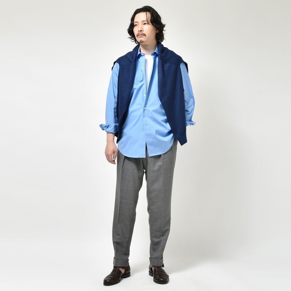 ドレスシャツとしての機能性向上のためのハンド工程を、スポーツニュアンスを伴ったシルエットのシャツに採用するというところにこのシャツの神髄があるように思います。