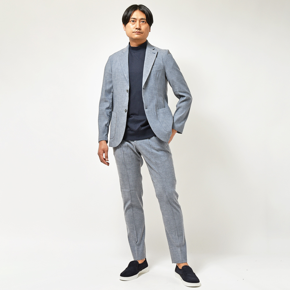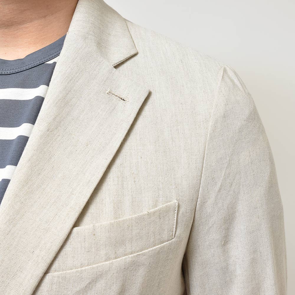 ブランドの人気を支えるイージーケアが売りのファブリック“TECNO WOOL”。その派生で生まれたファブリックがこちらの“TECNO LINEN”になります。目付け240gの程よいウエイトに、本家同様に自宅で洗うことができ、また通常のリネン素材に比べてシワが入りにくくなっています。伸縮性のないリネンの煩わしさから解放してくれるストレッチ性も兼ね備えており、夏のスタイリングの幅を格段に広げてくれるに違いない新戦力と言えます。