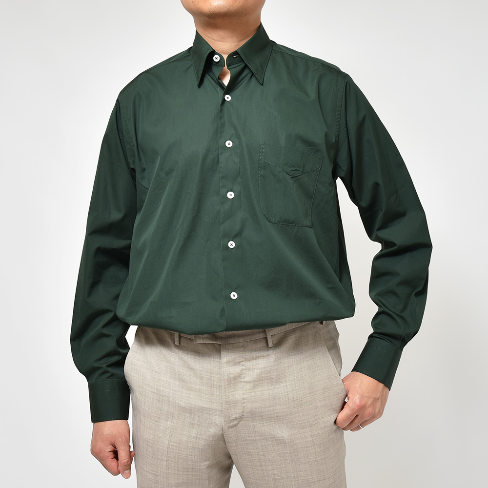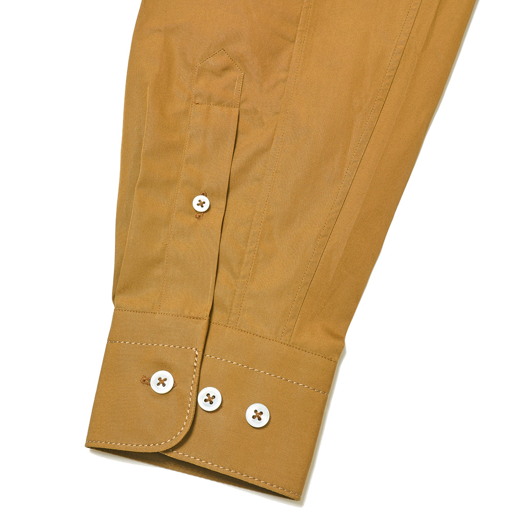 素材はエジプト超長綿のGIZAコットン120双糸を高密度に織った“Full Weight Egyptian Poplin”。ハリとコシのあるヘビーなポプリンに、シルク糸で縫製を行うことでシャツとは思えない無類の強度を生んでいます。着用と洗濯を繰り返すことで変化する表情は、長い年月をかけて楽しめる飽きのこない一品です。