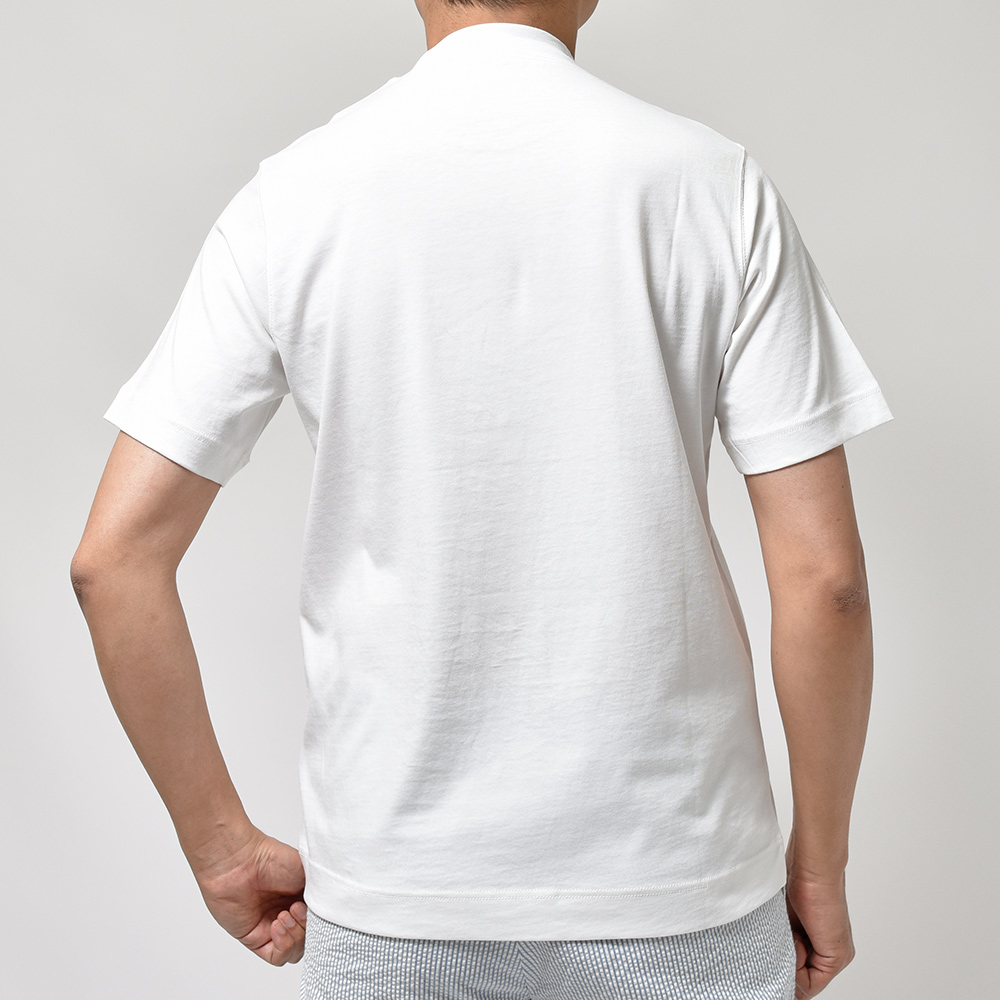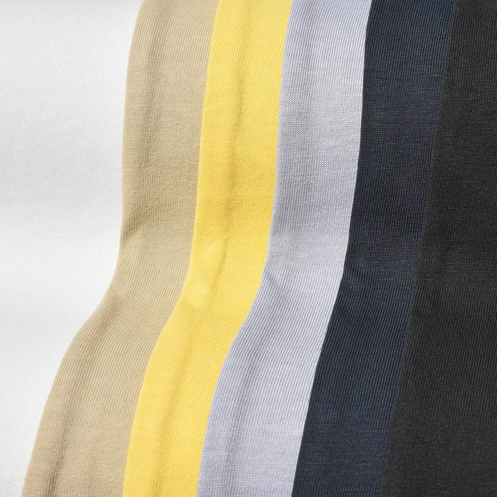 中毒者が続出しているココンチのジャージーカットソーシリーズ。少しドライなタッチの生地にガーメントダイを施した一枚でもサマになるクルーネックは、程よくタイトなサイジングがなんとも“らしさ”が詰まった秀逸な一品です。コットンジャージー素材による抜群の伸縮性が体にフィットし、まるで何も纏っていないかのような錯覚に陥ります。薄手でややドライな質感ですので春先のインナーには勿論、真夏にその真価を発揮してくれること間違いありません。