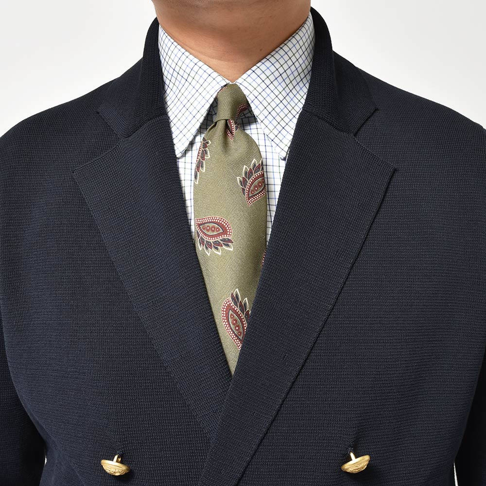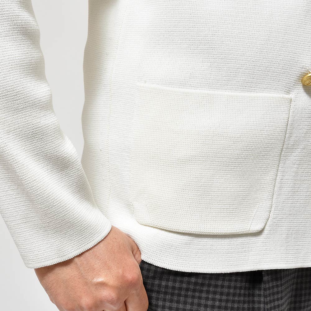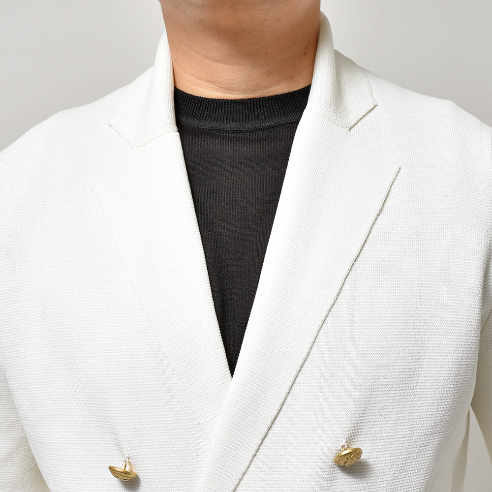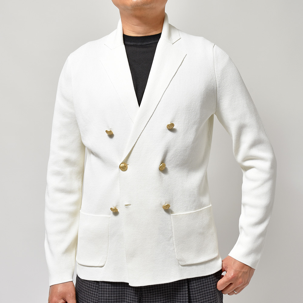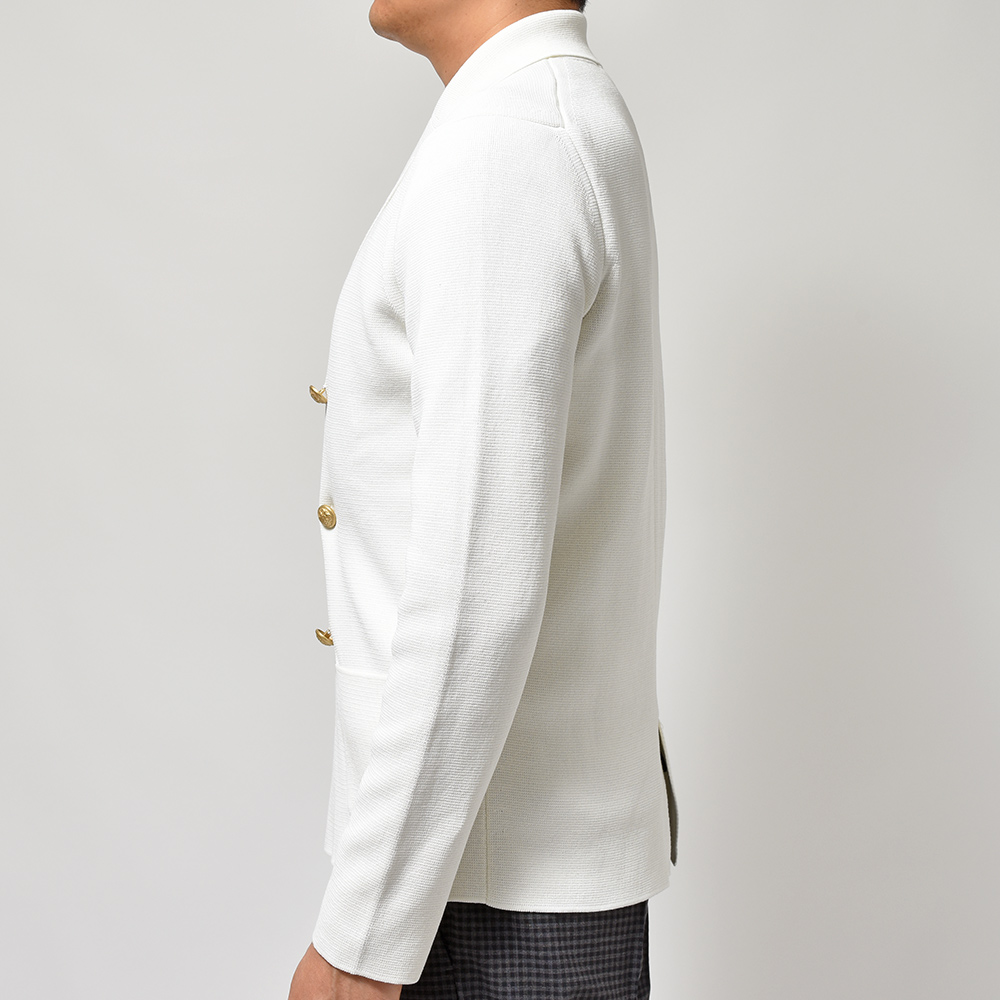 コットン ミラノリブ ゴールドメタルボタン ダブル6Bニットジャケット