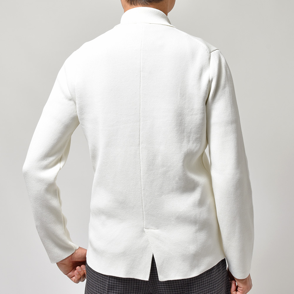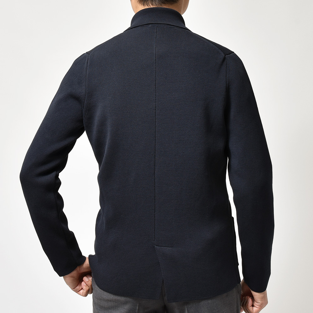 高い技術力からくる丁寧な肩付けが美しいラインを生み出しているDrumohrのニットジャケット。やや狭めのラペルに小ぶりな腰ポケットがモダンな印象を与えつつ、ゴールドのメタルボタンによってさらにファッション性が付与された、シンプルなスタイリングでも華のある佇まいを作り上げてくれます。ライトウエイトのミラノリブですのでゴワつきがなく着心地も良いので、カーディガンのような感覚で羽織ることができます。