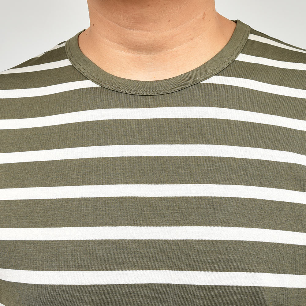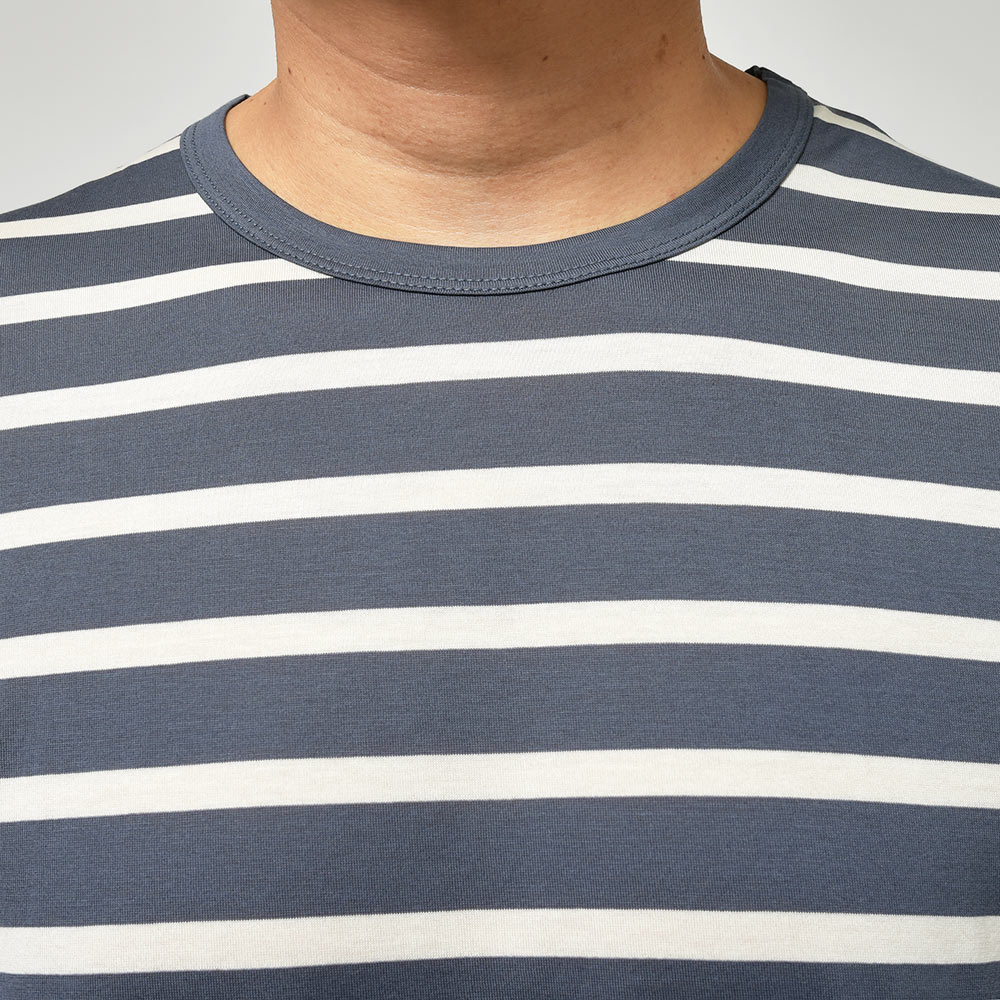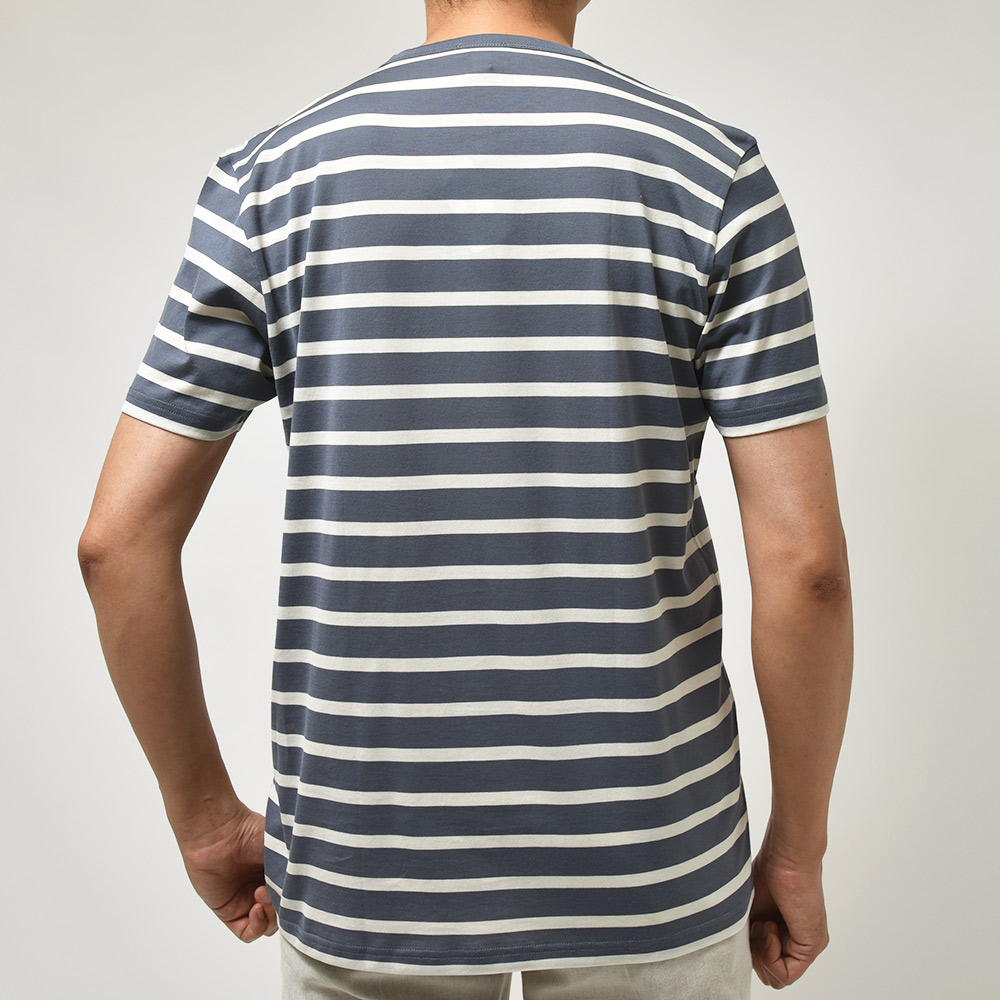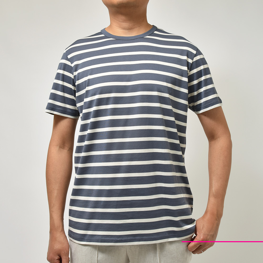 最高級のエクストラロングステープル(超長繊維)スーピマコットンを使用。ライトウエイトの生地はサンスペル独自の開発によって、薄手ながら耐久性が高く、ガス焼きによって綿糸の不純物や毛羽を取り除くことで滑らかで非常にソフトな肌触りを実現しています。着回しの効くクラシックなフィット感は、インナー使いから少しゆとりを持って一枚でサラッと着ても頼りになる一品です。