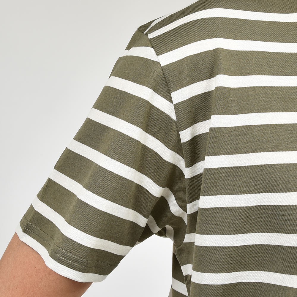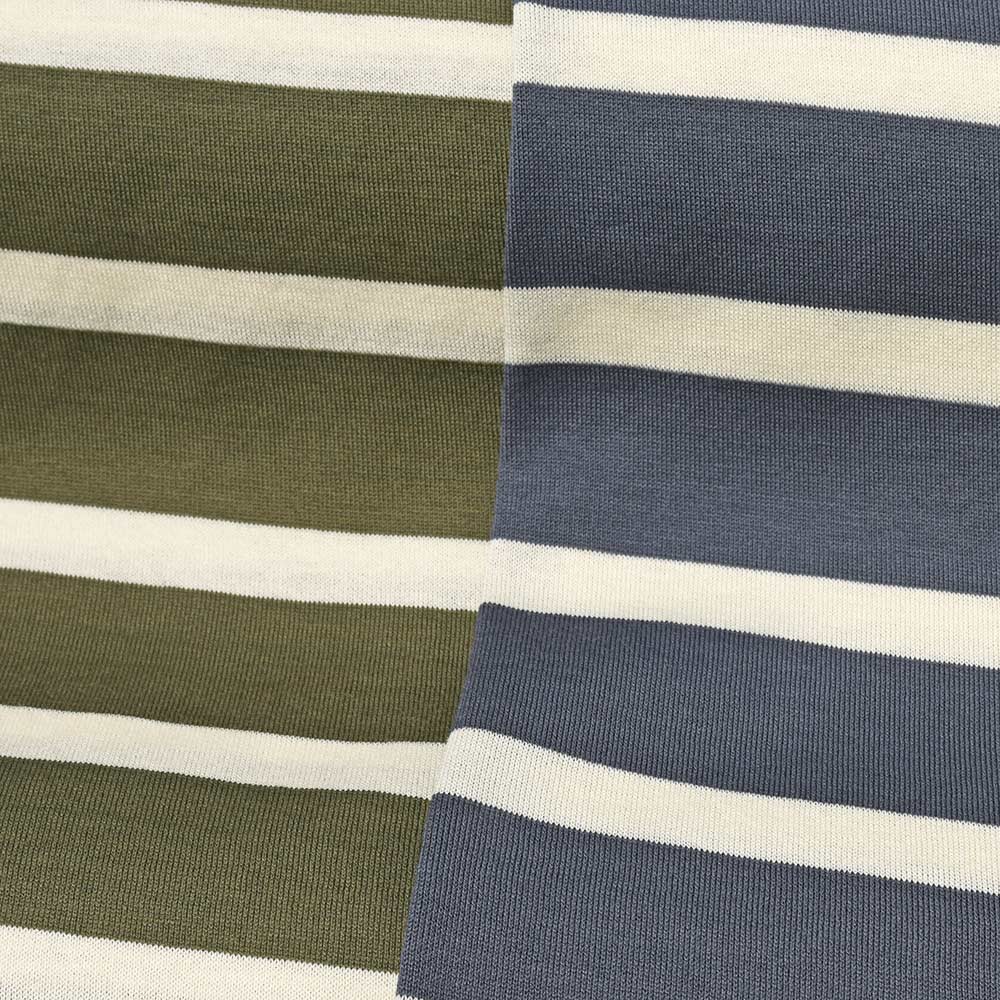 (画像のスタッフは182cm、76kgでスレートブルー×エクリュはLサイズを、カーキ×エクリュはXLサイズを着用しています。)