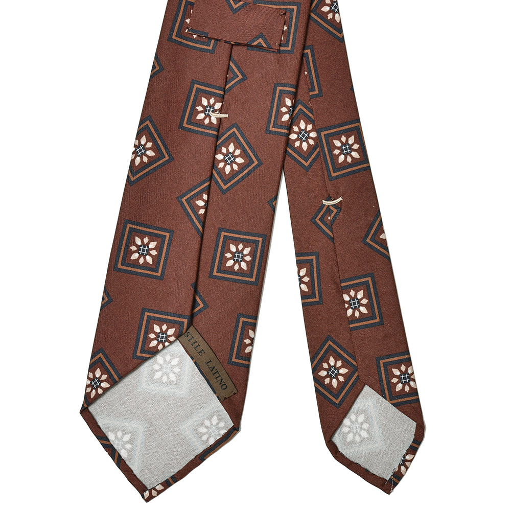 少し大きめなサイズのスクエア小紋プリントが、ほんのりと華やかさのあるSTILE LATINOのはジャケットやスーツには丁度良い塩梅です。