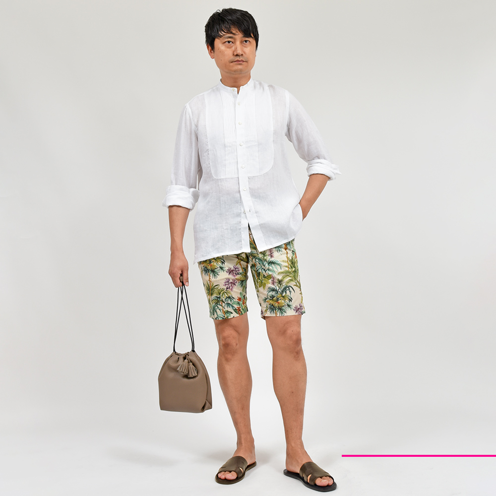 リゾートはもちろん、タウンユースでも上品に見せられるPT TORINOのBERMUDAは、こういったプリント物もお手のものです。