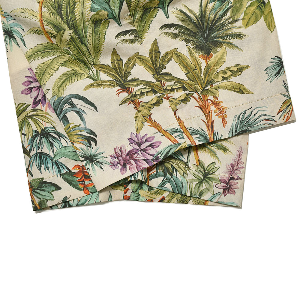 PT TORINOらしい上品な色使いのこちらは、目付け160gの薄手のコットンポプリンを使用しています。真夏に向けた清涼感ある質感に、落ち着いた色味のボタニカルプリントが、夏のスタイルを程よく盛り上げてくれる一品です。