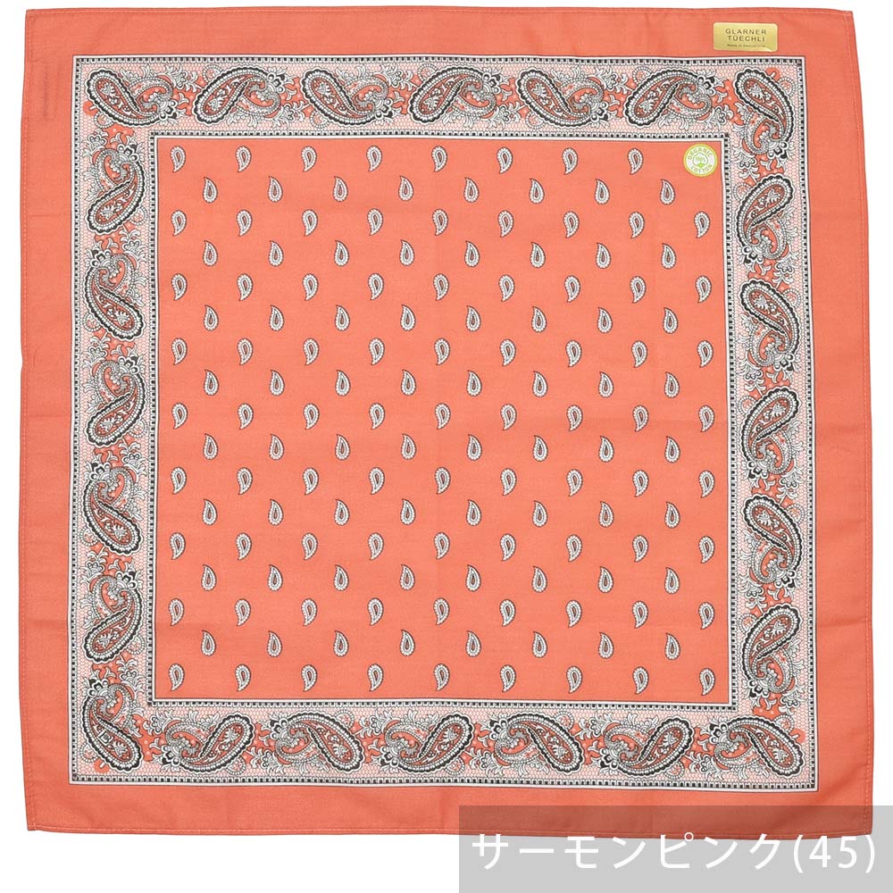 独自の製法と最高級の品質を守り続けてきたハンカチ・バンダナメーカーBlumar(ブリュメル)社。その老舗メーカーのオリジナルブランドが、こちらのGLARNER TUECHLI(グラルナーチューヒリ)になります。伝統的なパターンであるペイズリーに、豊富なカラーバリエーションとその発色を維持し続け、他にはない美しいバンダナを現在に至るまで提供し続けています。180年以上の歴史で培った繊細なパターン、豊富なカラーバリエーションとその発色は、他にはまねのできない美しいものがあり、ヨーロッパを中心に世界中に多くの顧客をもっています。