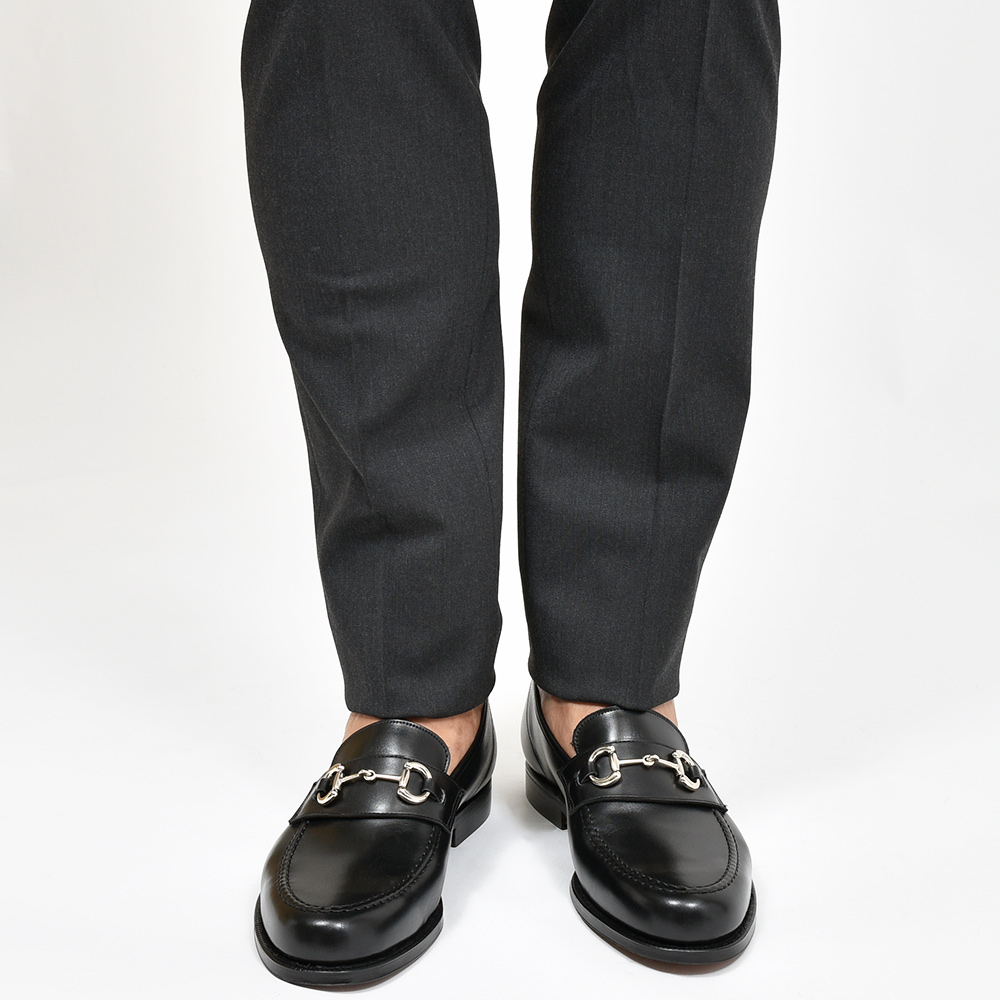 Crockett&Jonesのアーカイブモデルをアップデートさせたモデル“FINCHLEY2”。真っ直ぐなサドルに大きめのビットを使用したデザインは、足元からファッション性を感じさせつつも、カジュアルに振れすぎないシンプルで大人びた顔つきに。ビットはペールゴールドでオーダーしているため、ほんのりとゴールドを感じられる色合いになります。また、アンライニング仕様(踵部分のみライニング有り)ですので、柔らかで軽やかな履き心地は癖になること間違いありません。