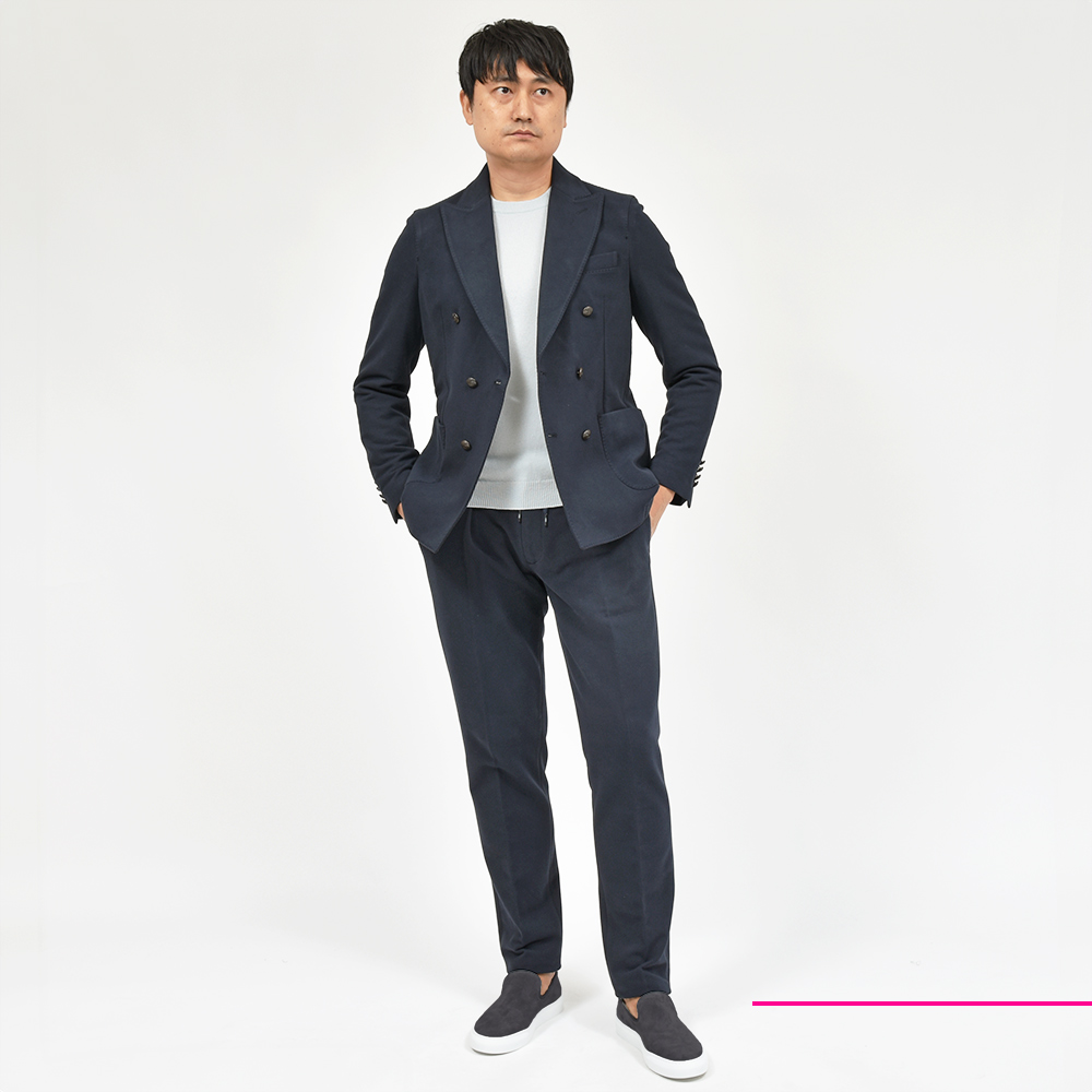 こちらのパンツはセットアップになるシングルジャケット(別売)とダブルジャケット(別売)をご用意しております。