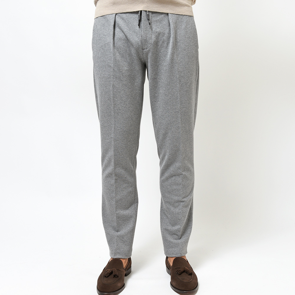 ドローコードを垂らしてスポーティーなカジュアルスタイルから、ベルトをすることでラフなビジネススタイルにも対応する、CIRCOLO 1901を代表する高い適応能力を持つ一本です。