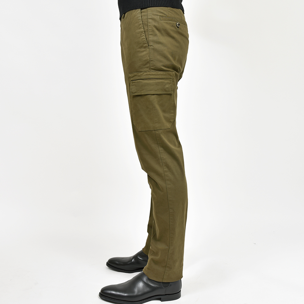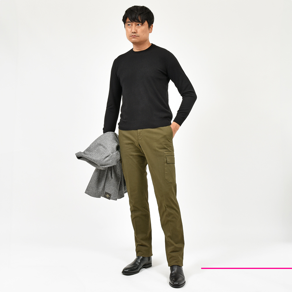 マチ幅のないすっきりとしたシルエットのカーゴパンツは、スタイリングに程よくミリタリー要素をプラスできる非常に優秀な一本です。