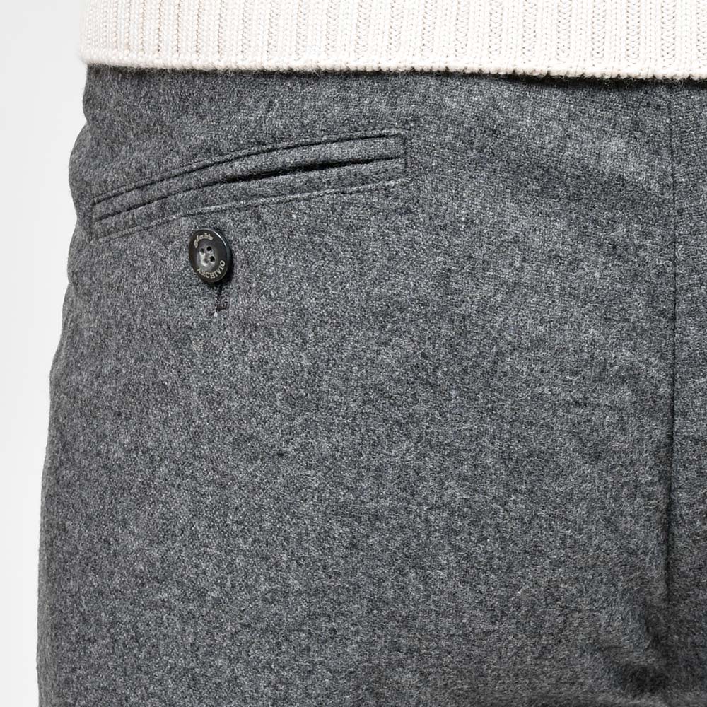 目付け320gのメランジを効かせたコチラの生地は、ジャガード織りのライトフランネルがウォーム感を感じさせる、ココンチで毎年人気の定番ファブリックになります。平織りでおられた生地は凹凸感が生まれ、メランジと相まってシンプルでありながらも確かな存在感を発揮。さらに、素材はウォッシャブルウールを使用し水洗いが可能となっているため、自宅で気軽にウールパンツのケアできるのは非常に嬉しい限りです。