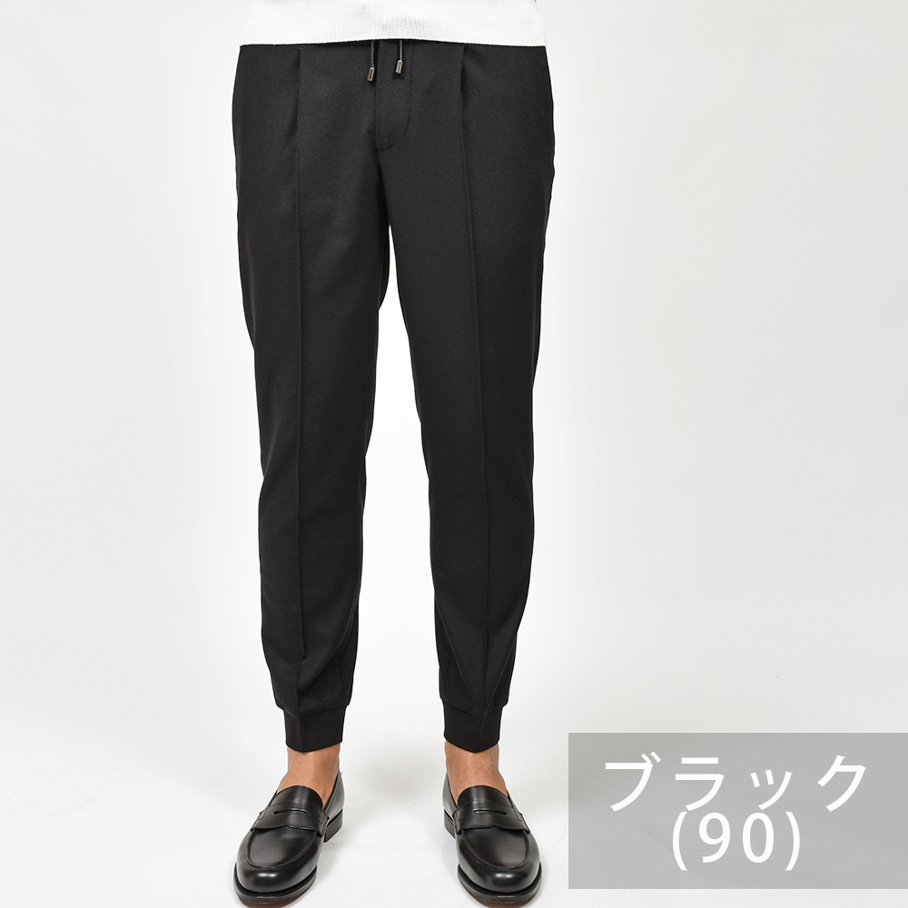 サイズ48で腰回りは程よくゆとりがあり、ワタリから膝にかけては少しゆとりがあり、膝下から裾に向かって綺麗にテーパードしています。リブパンツですが永久クリースとプリーツによってキレイめな見え方になります!