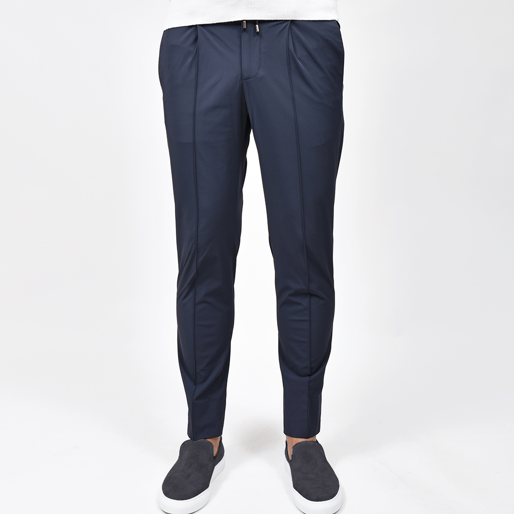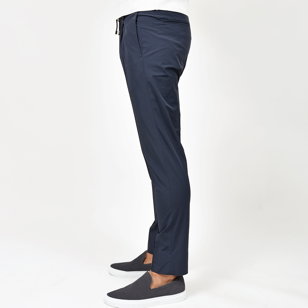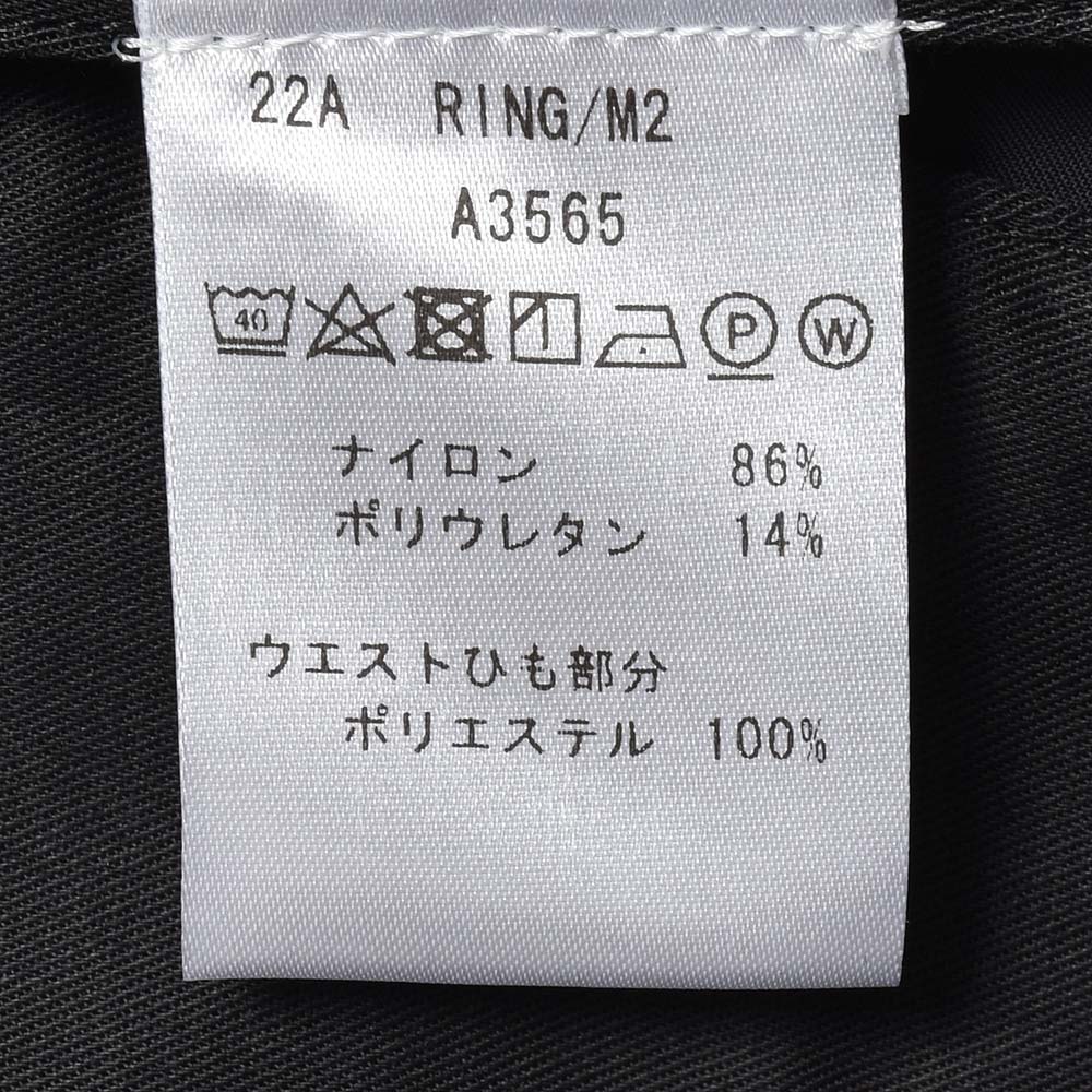 サイズ50がジャストサイズです。ヒップ・ワタリから裾にかけてタイトすぎず適度にゆとりがあって穿きやすく、それでいてスッキリとしています。永久クリースに旬なプリーツが ring 別注ポイントで、イントレチャートのドローコードをアクセントにしています。スポーティーでありながらも上品さのあるナイロンストレッチです!