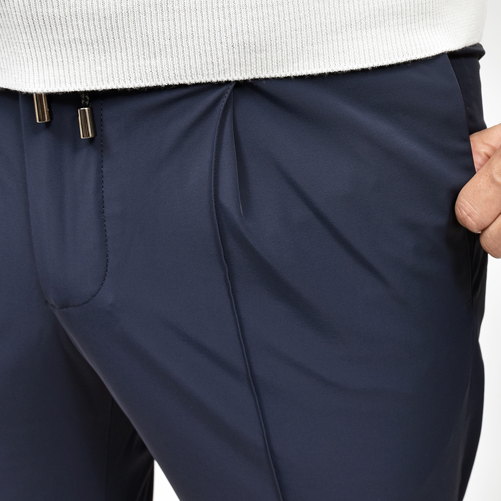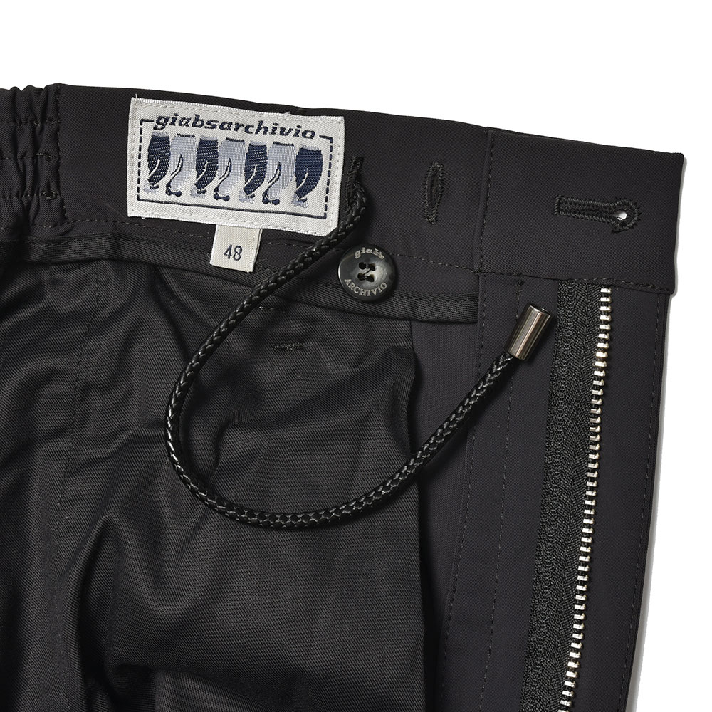 giab's ARCHIVIOを語る上で外せないアイコンモデルの“MASACCIO(マサッチョ)”。リラックスパンツであっても、スリムテーパードの美しいシルエット。さらには、フロントクリースをステッチで抑えることで、美しいラインがいつまでも続く永遠を約束された特別な一本です。ウエストのサイドにはゴムが入っており、ウエストは4cmほど伸縮してくれるリラックスした穿き心地。ドローコードは内側に隠すことができるため、ベルトを巻くとビジネスにも対応する、リラック顔にもドレス顔にも変化の効く万能なアイテムです。