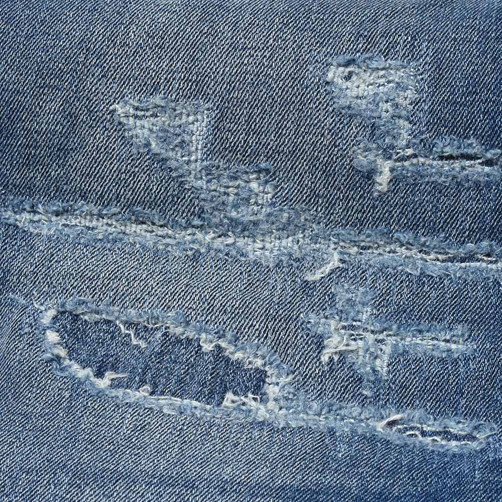 サイズ31でウエストはややゆとりがありますが、足回りはピッタリとした細身のシルエットです。スタイリングに遊びを効かせられるダメージデニムです。