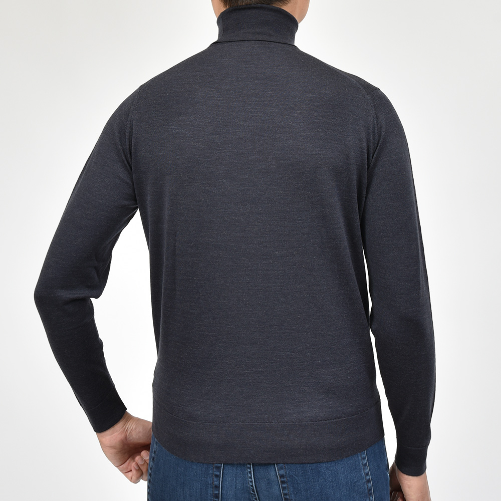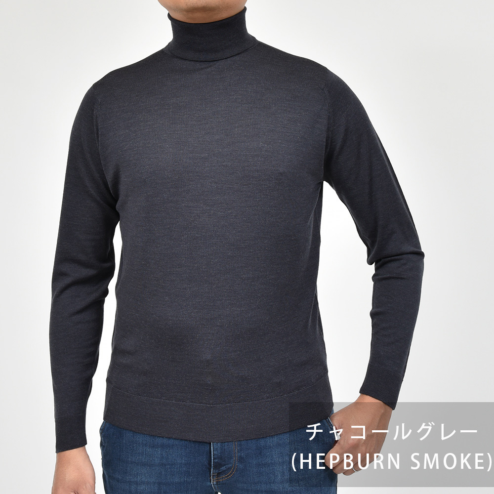 滑らかで仄かな光沢感を放ち、非常に手触りの良いエクストラファインメリノウールを使用した、定番ハイゲージの30ゲージシリーズ。やや透け感のあるハイゲージは、ジャケットなどのインナー使いは勿論のこと、サイズ感を少しゆったりめにすれば一枚で着用しても雰囲気のあるスタイルになります。JOHN SMEDLEYでは定番のタートルネックニットモデル“LEVINE”は、ネックが高過ぎず低過ぎない日本人にも合いやすい設定となった汎用性の高い一品です。