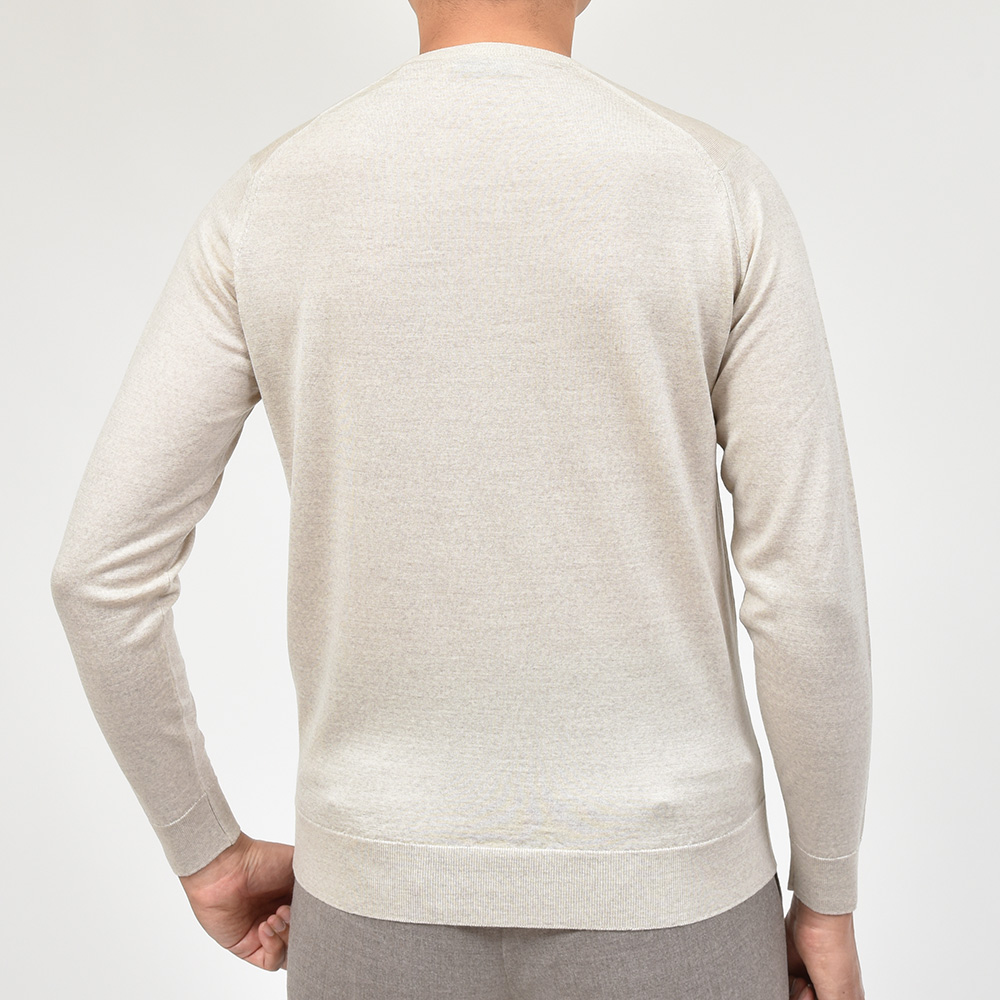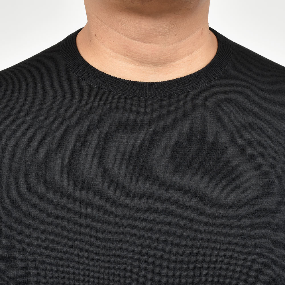 滑らかで仄かな光沢感を放ち、非常に手触りの良いエクストラファインメリノウールを使用した、定番ハイゲージの30ゲージシリーズ。やや透け感のあるハイゲージは、ジャケットなどのインナー使いは勿論のこと、サイズ感を少しゆったりめにすれば一枚で着用しても雰囲気のあるスタイルになります。JOHN SMEDLEYでは定番のクルーネックニットモデル“SCANLAN”は、Tシャツやシャツとの重ね着は勿論、一枚で着てもスタイリングに品のある表情を作り上げてくれます。