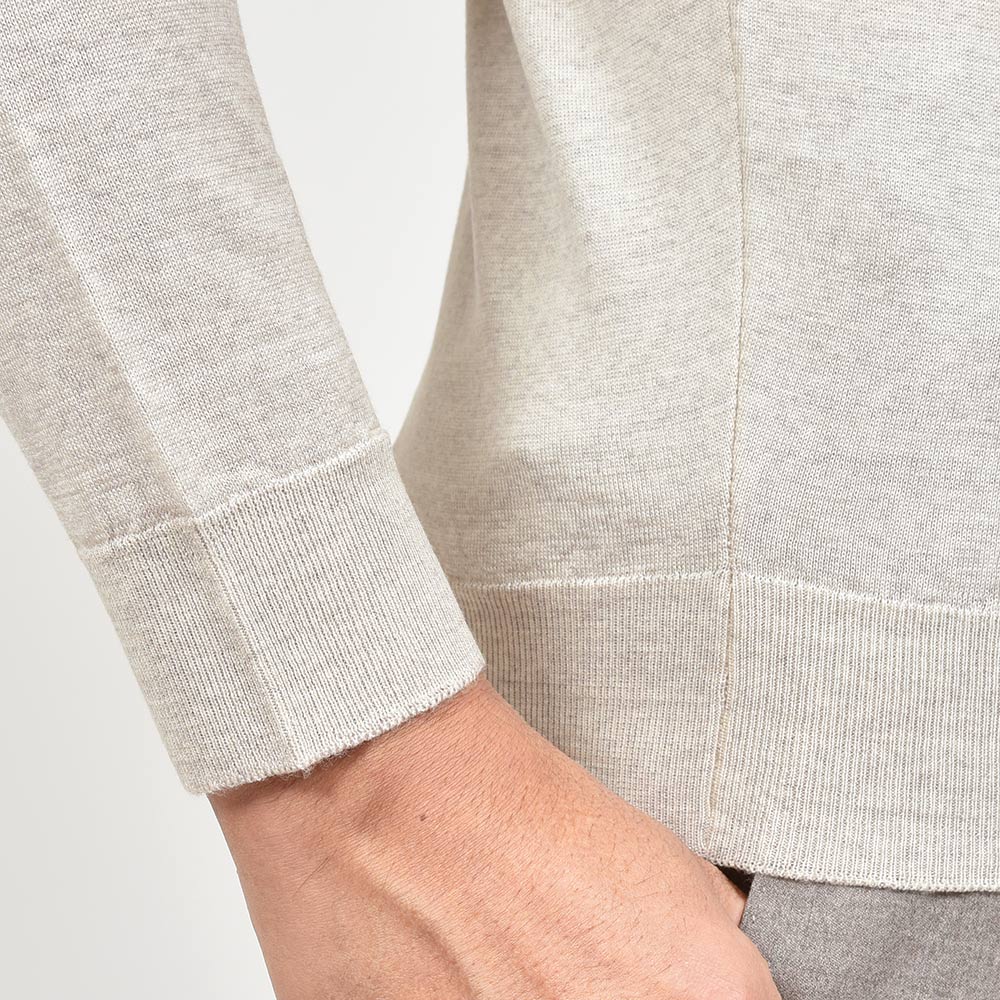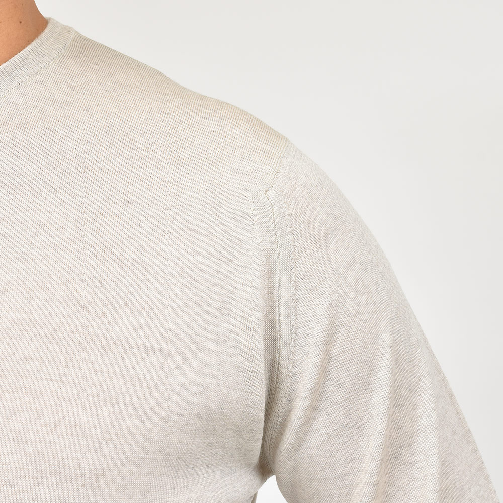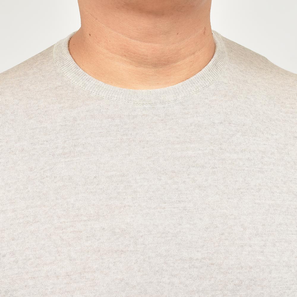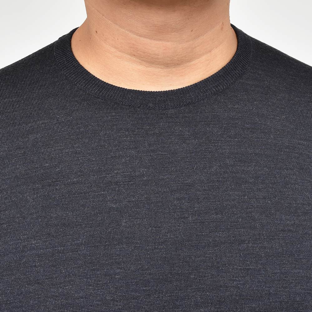 様々なシーンでその力を発揮してくれるクルーネックニットは、上品な雰囲気を醸し出してくれるハイゲージもワードローブには必要なアイテムです。