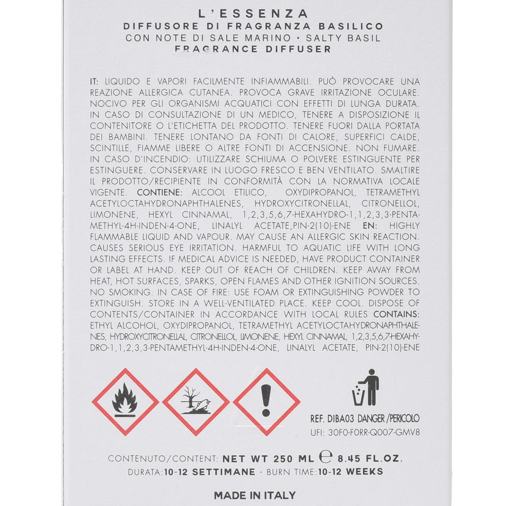 こちらは、お部屋に香りを満たしてくれる250mlのディフューザー。地中海から降り注がれる潮風を浴びたバジル畑をイメージしています。嗅いだ瞬間に過去の記憶を辿ってしまうような、どことなく懐かしい香りが印象的です。甘過ぎず透き通るようなで爽やかな香りがアクセントとなり記憶に残る魅力的な香りです。