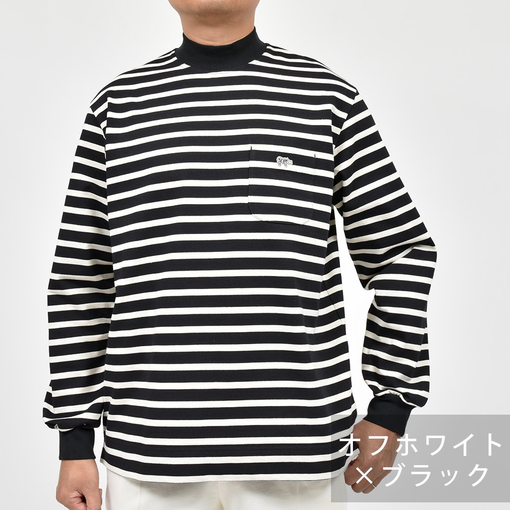 コットン 16ゲージ 度詰め天竺 ボーダー モックネック カットソー