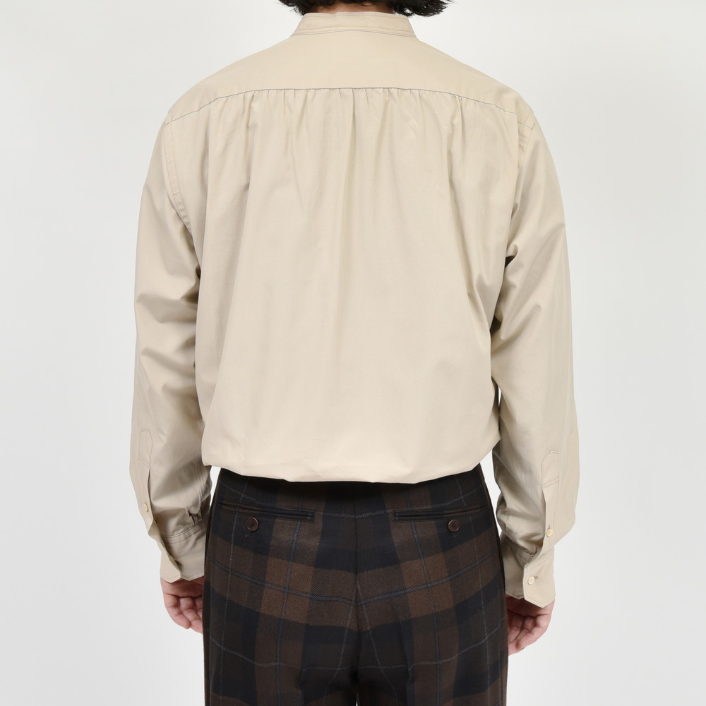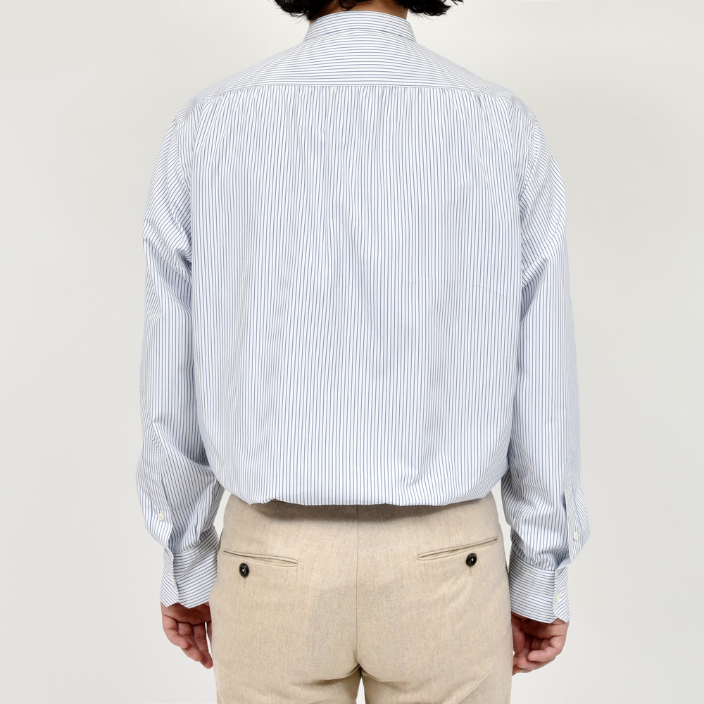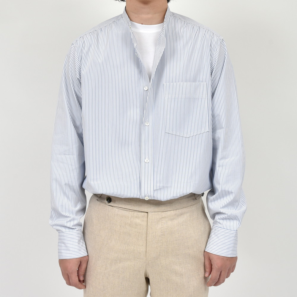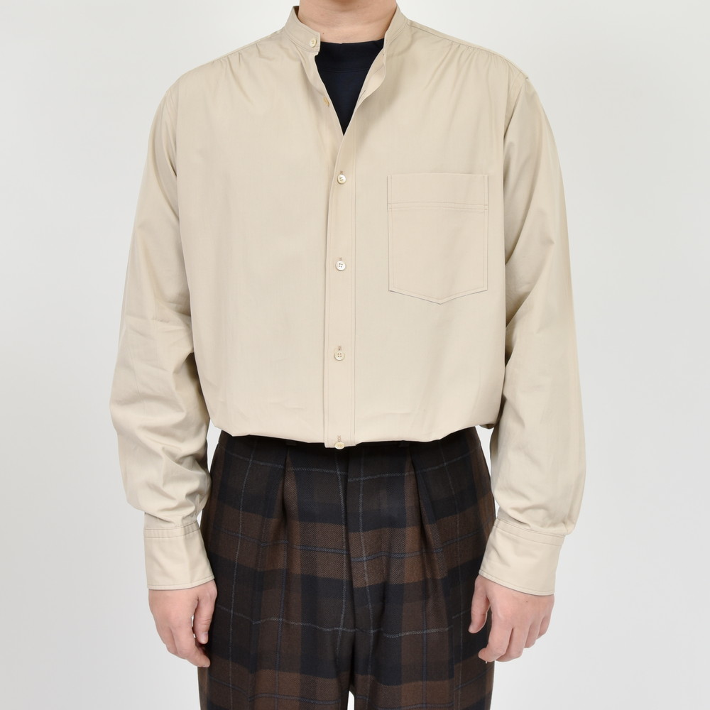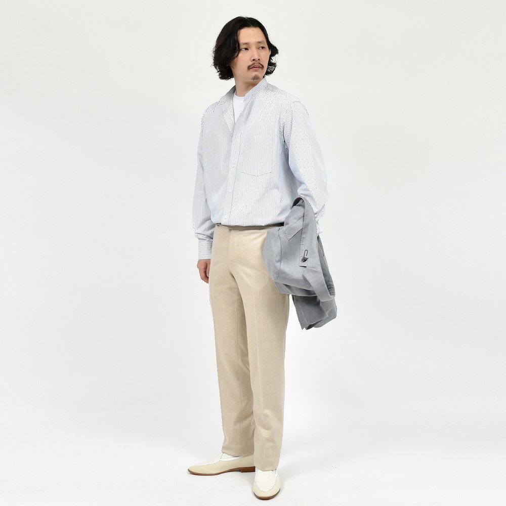 それで、今回はより幅広くお客様に着て頂きたく素材をコットンに置き換え、家庭洗濯が気軽に出来、カジュアルにもプレスをかけドレッシーにも、オン/オフ問わず着用して頂けるように作りました。