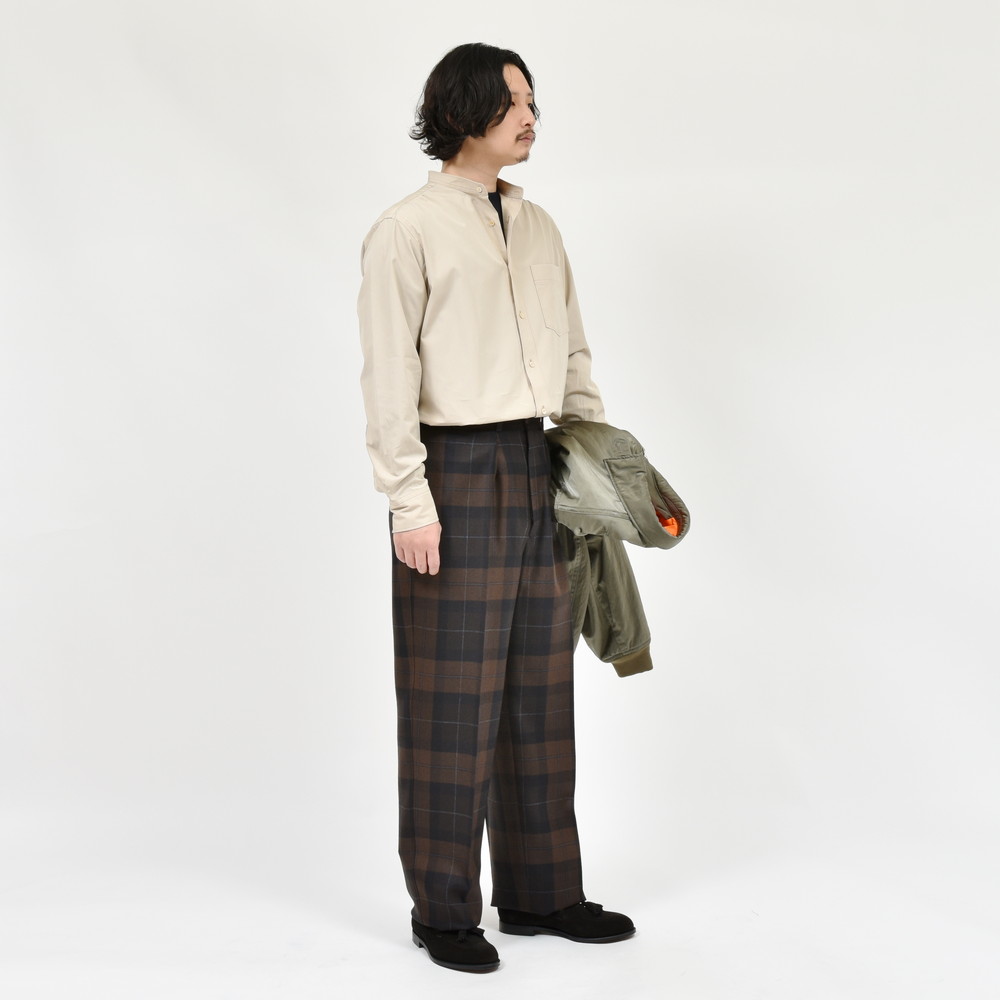 デザインポイントになっている前後ヨークに入れたイセコミをふっくらと、自然に表現できる生地感でして、ハリコシとしなやかさを併せ持つトーマスメイソンならではのクオリティが際立つ仕上がりになっています。