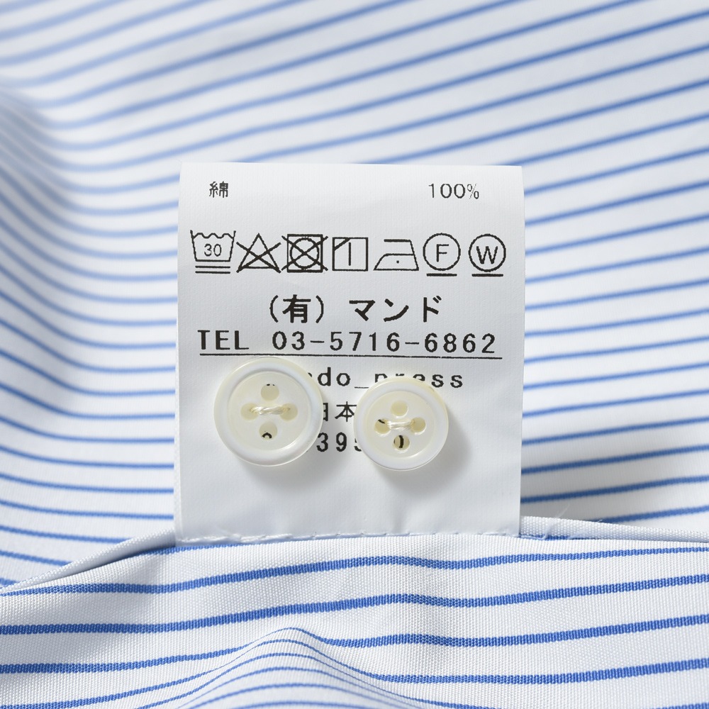 素材はイタリア製(トーマスメイソン)で高密度の発色の良い最高級のシャツ生地を使用致しました。』