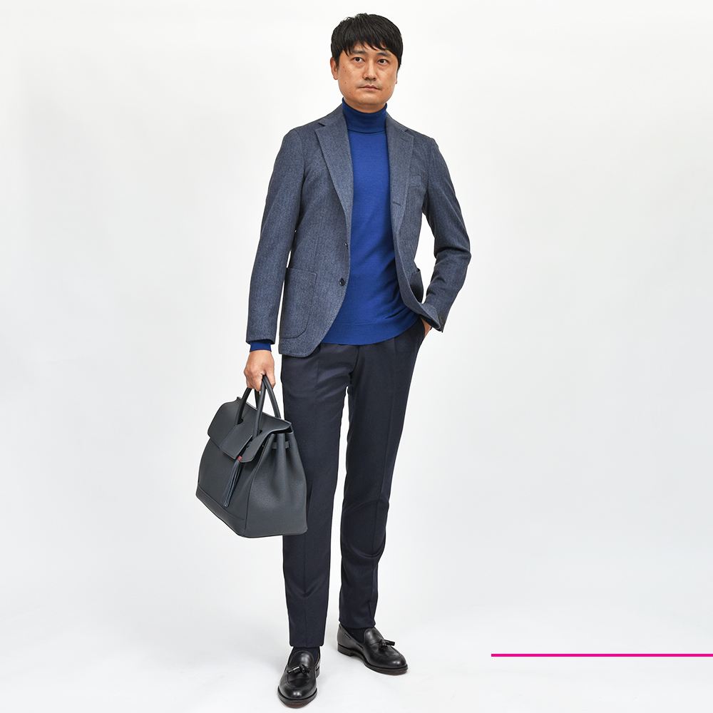 モデルはErrico Formicolaでは定番で最もスタンダードなモデル“ANDREA”。やや細身のフィッティングに、一部接着芯を使用したアンコン仕立ての軽やかな着心地でありながらも、程よくドレスライクに見える仕立ての良さを感じられる非常に高い完成度を誇ります。